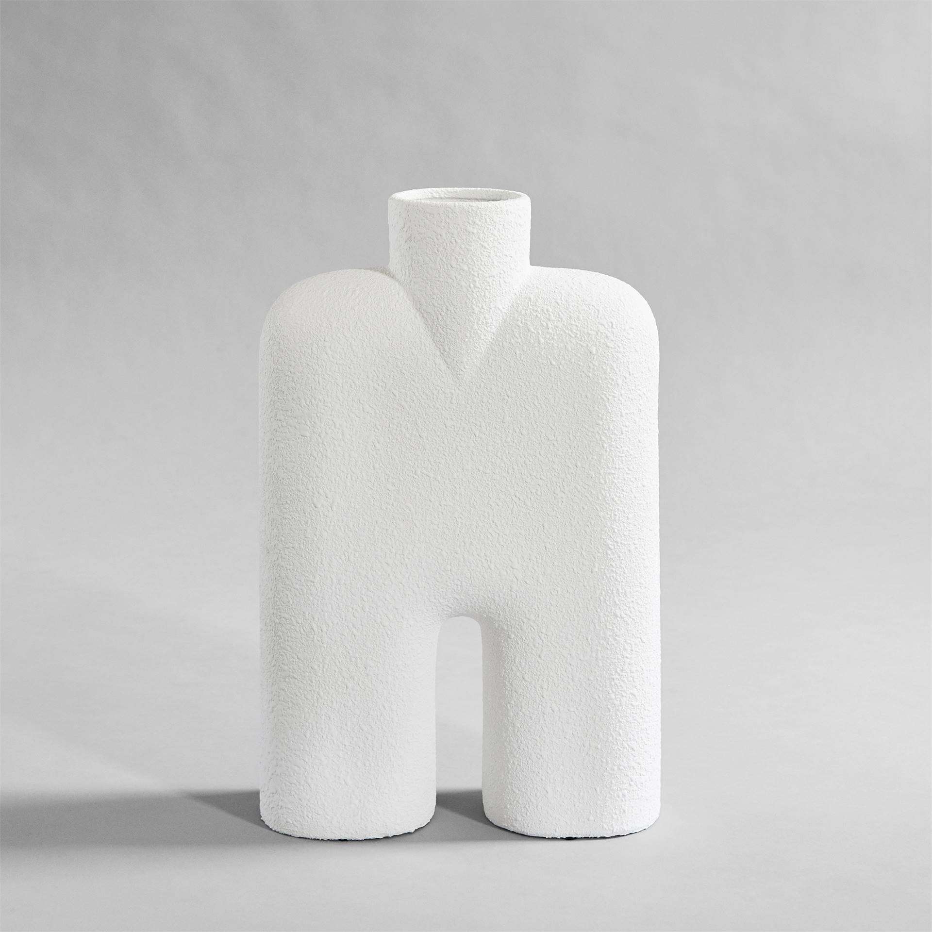 101 COPENHAGEN Cobra Tall - Bubble White - Cobra celebrates the absurd and playful silhouettes of the Cobra Arts Movement of the 1960s. The Cobra collection challenges the balance between soft and consistent shapes, playing with human silhouettes in contrast to architectural building components. The design is based on a few naive hand sketches, from where the human like silhouettes occurred, together forming a family of four vases.