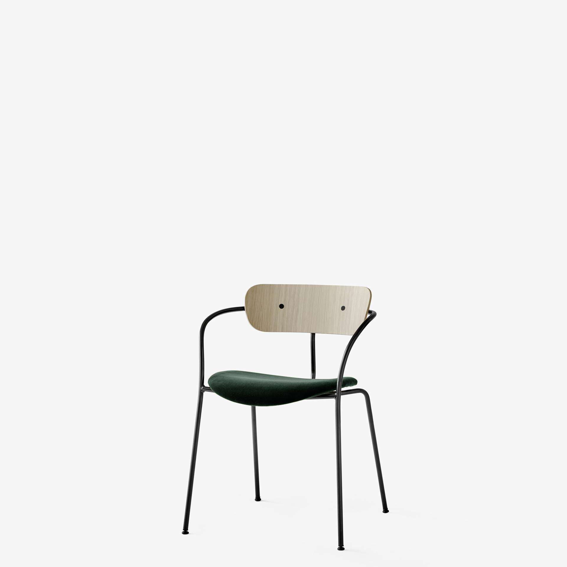&TRADITION Pavilion AV4 Dining Armrest Upholstered Seat - Located on the castle grounds of Copenhagen’s Kastellet overlooking the waterfront promenade that is home to the Little Mermaid, The Langelinie Pavilion stands with a resilient spirit. The first Pavilion was built in 1885. Echoing its own ability to endure is the Pavilion chair by Andersen & Voll. Here the challenge was to design a stackable chair used for mass seating in this iconic, multi-purpose venue, the Langelinie Pavilion. The Pavilion chair has an airy feeling, with slim arms and legs that give it a light appearance.