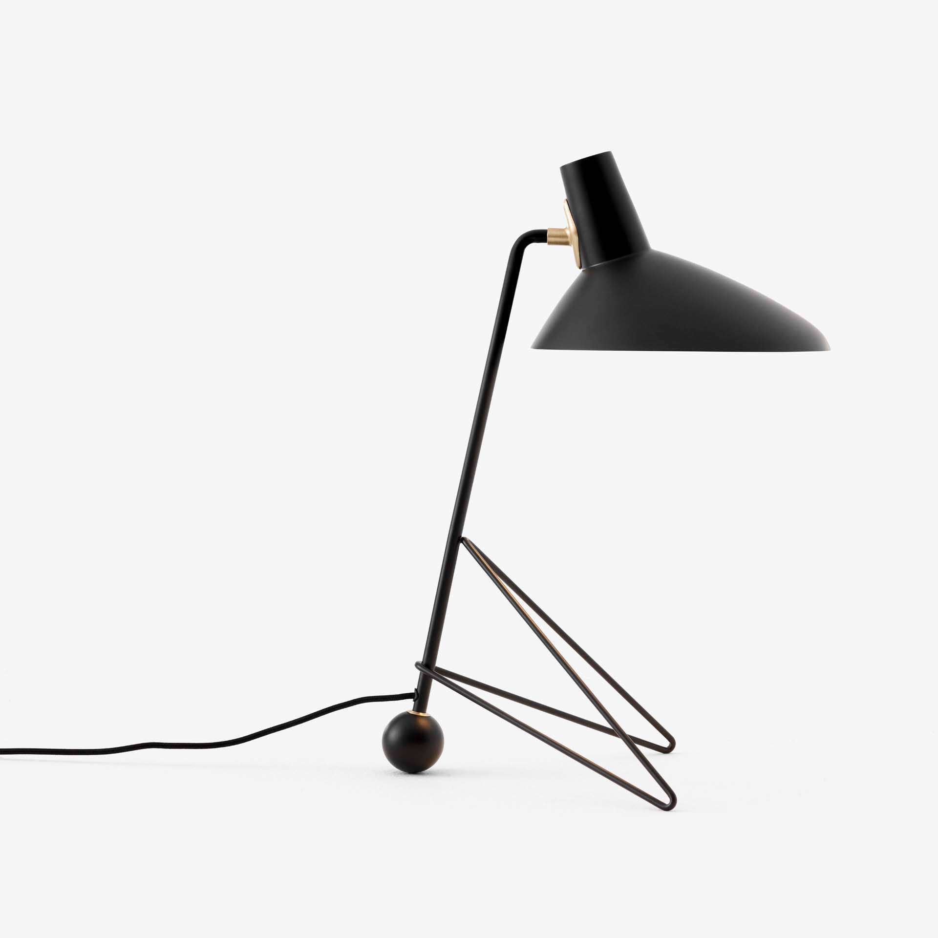 &TRADITION Tripod Table Lamp - Tripod from 1953 reflects the clean minimalism of Old Masters Hvidt & Mølgaard. A floor lamp built from lacquered steel with brass details, it strikes a delicate balance between the stark simplicity of its design and the softness injected by the curved edges of its base. Although it was designed in 1953, this is the first time it's in production.