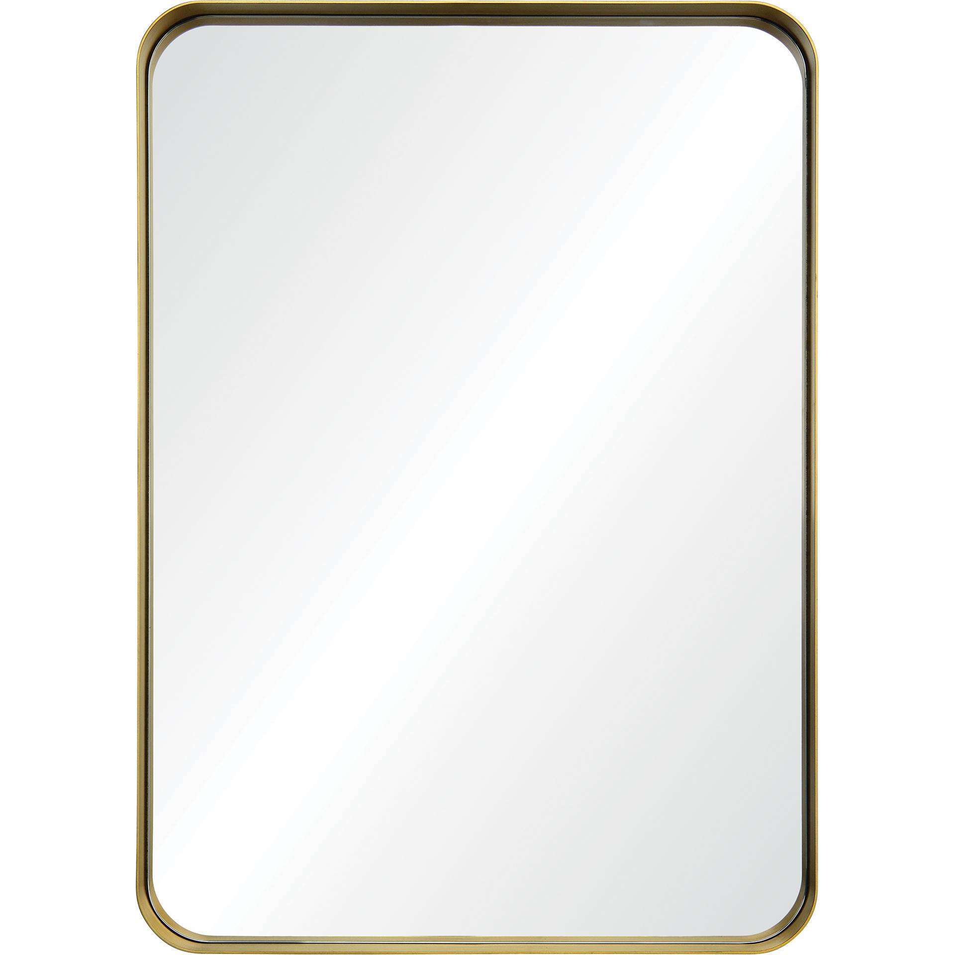 When it comes to designing a contemporary wallscape, this modern mirror offers all the right reflections. Curved corners keep the mirror’s rectangular shape far from conventional, while the recessed placement of the looking glass highlights the thin profile of the iron frame. The decorative wall mirror is finished in a brushed antique gold patina that gives contemporary spaces a hint of classical antiquity.
