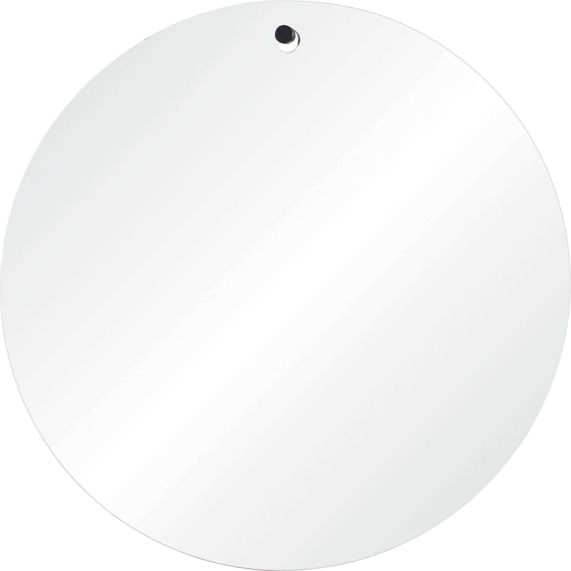 Take a moment to reflect in the all-glass design of this decorative wall mirror. The unframed silhouette makes the most of the mirror’s round shape, with small black hanging hardware that emphasizes the mirror’s shapely simplicity. Add this circular mirror to any wall in need of a modern moment.