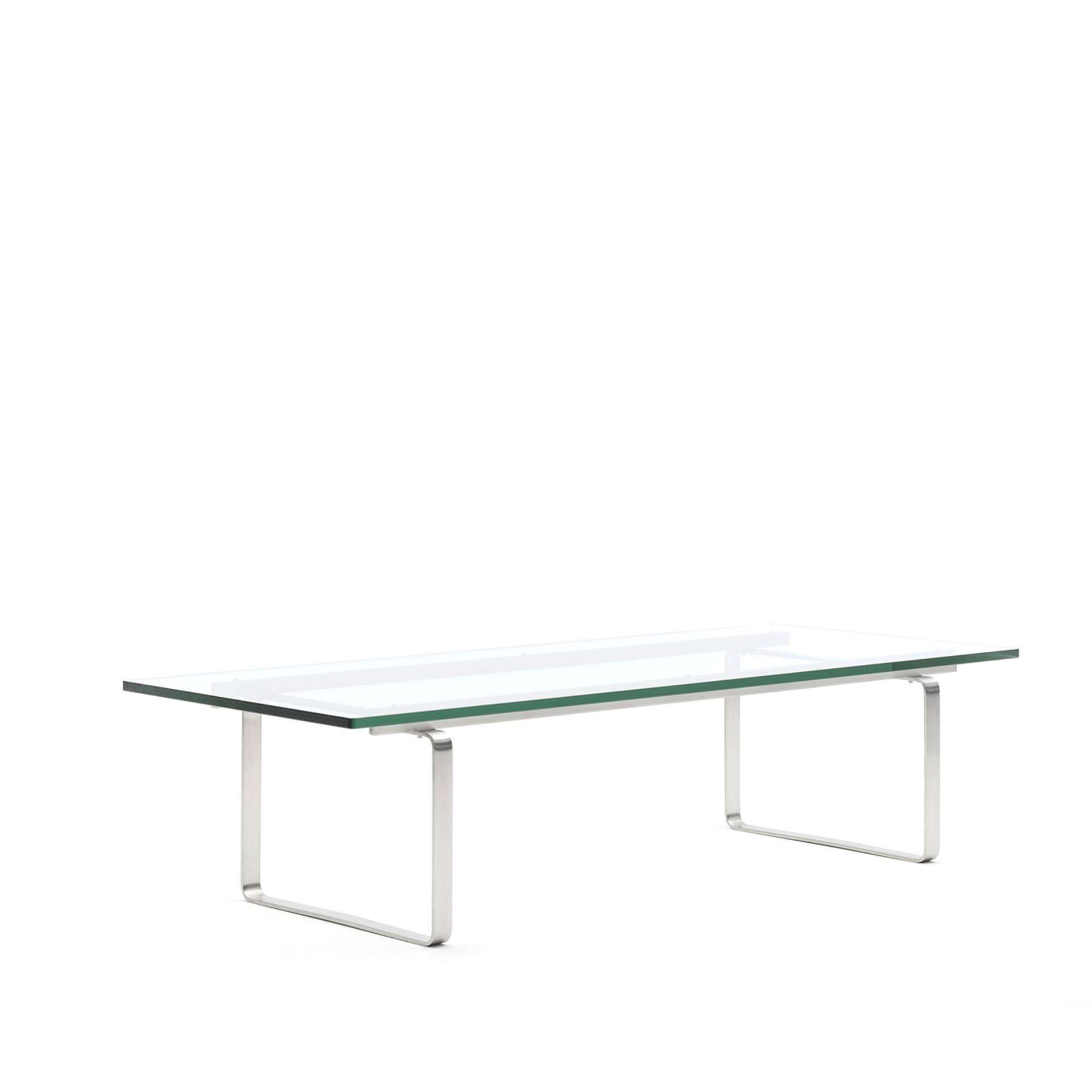CARL HANSEN CH108 Rectangular Coffee Table - The CH108 glass and steel coffee table is part of Hans J. Wegner’s elegant CH100 series. The brushed flat steel frame has a beautiful, smooth surface which is clearly visible through the sturdy rectangular glass top.