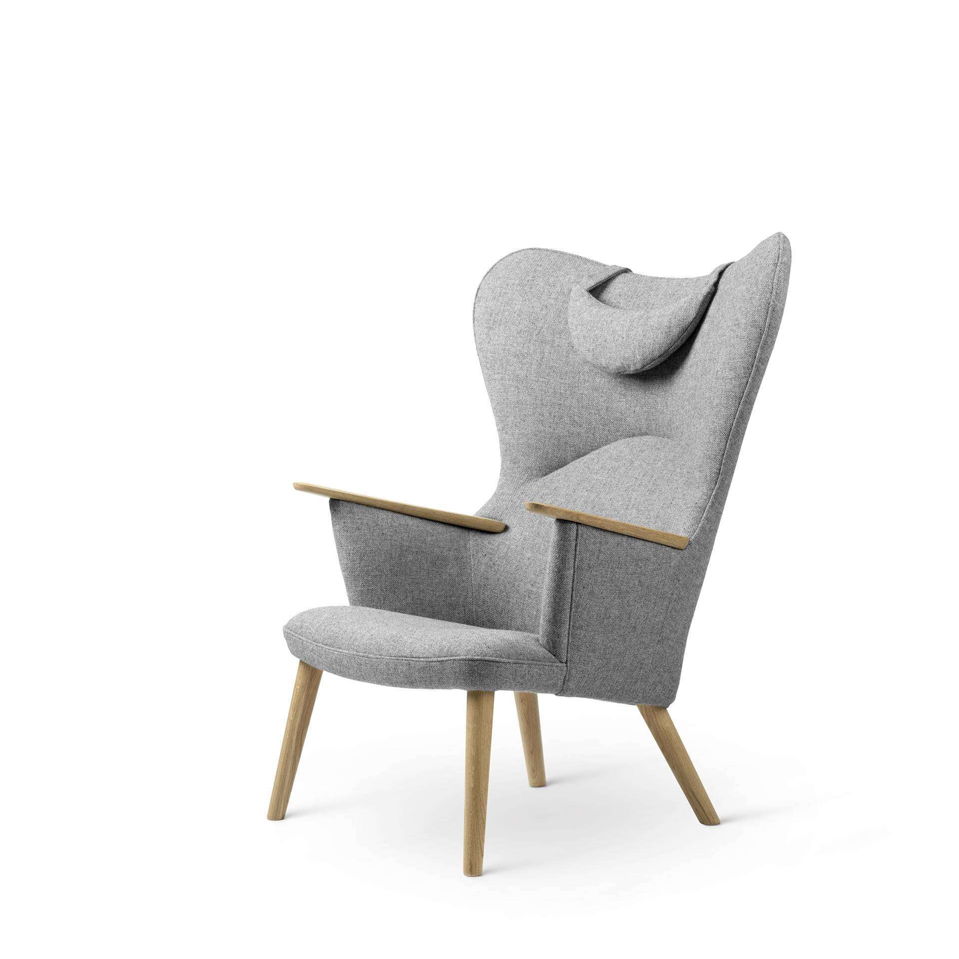 CARL HANSEN CH78 Mama Bear Lounge Chair - Affectionately known as the Mama Bear Chair, the CH78 Lounge Chair by Hans J. Wegner was originally introduced in 1954 as an extension of his CH71 Chair (1952) design. An antidote to the often-heavy lounge chairs of his time, Mama Bear’s sculptural silhouette is defined by a series of inviting curves that offer up a warm embrace. Frame, armrests, and legs are crafted for stability from solid FSC™-certified wood. An optional headrest in leather or corresponding fabric completes the design. Neckpiece sold separately.