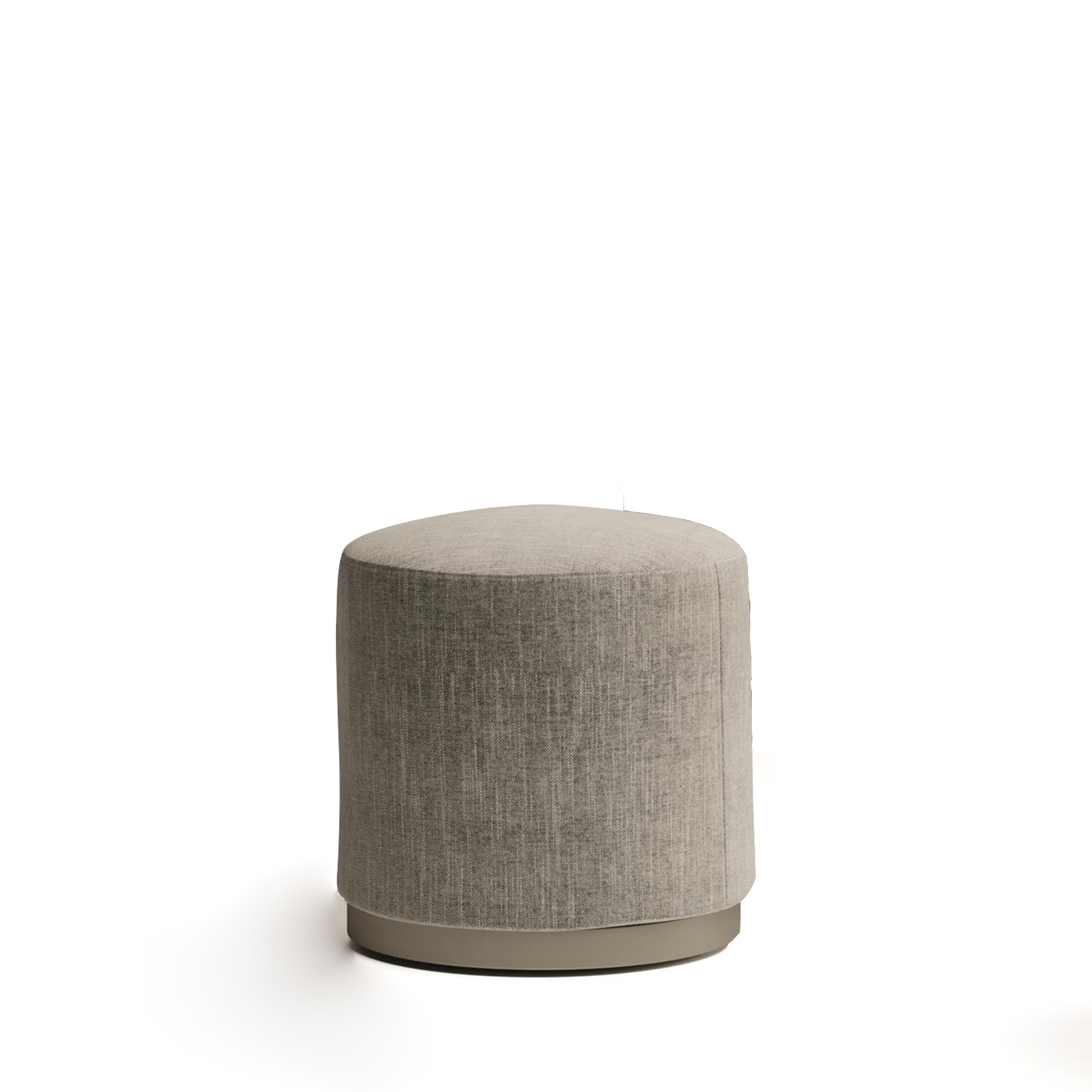 Pouf with square, rectangular or round base in two different diameters. Wooden base in antiqued brass or black finish.