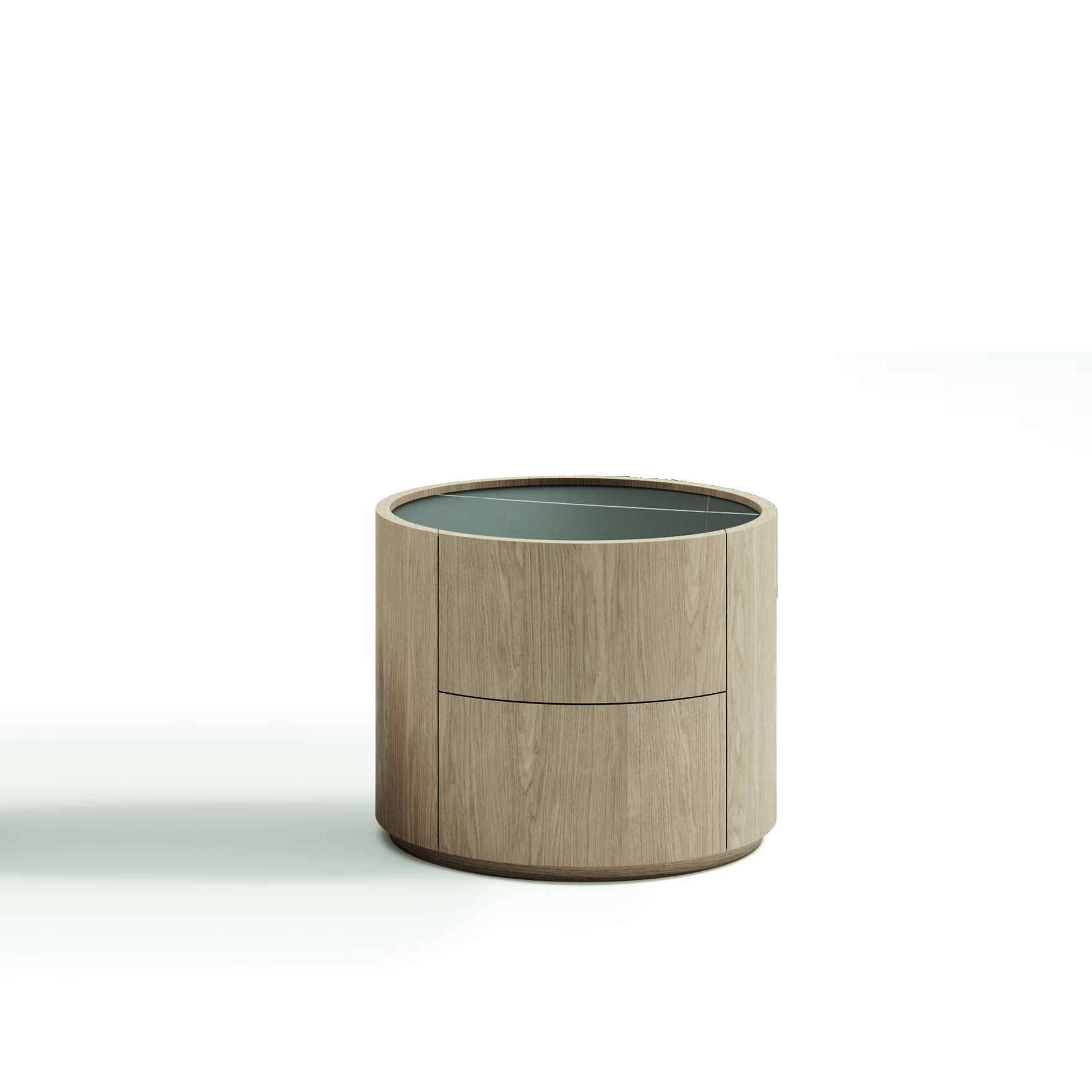 DALLAGNESE Ronda Night Table - The Ronda night storage units rest their rounded forms on a low wooden plinth that continues the lines and can be stained in the entire range of Dallagnese woods and lacquers. But you can also decide to interrupt the round monolith effect and slender night stands, tall units and tall units on a base with metal feet in two different heights.