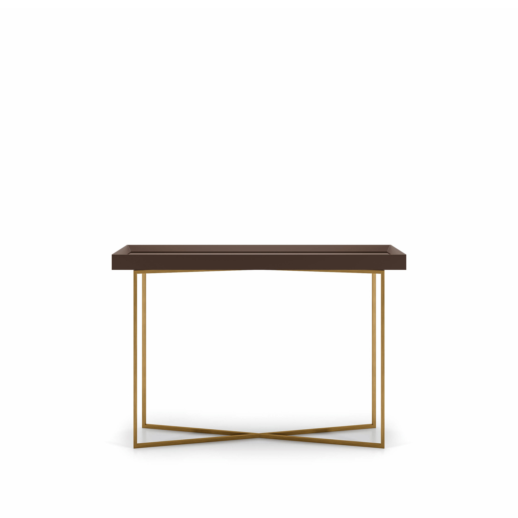 The Slash console features a metal stand that cuts a decisive, cross-shaped space and a stoneware or wood shelf, gently contained by a wooden frame. The elegance of balance lies in the details.