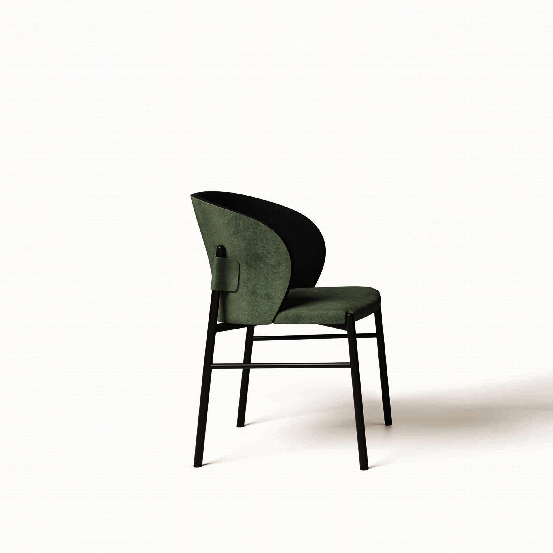 DALLAGNESE Supernova Dining Chair The rational lines of the metal rod legs with rounded tops ascend to the sides, where they support the backrest, and display the soft seat, attractive in its fabric, leather or ecoleather cover.