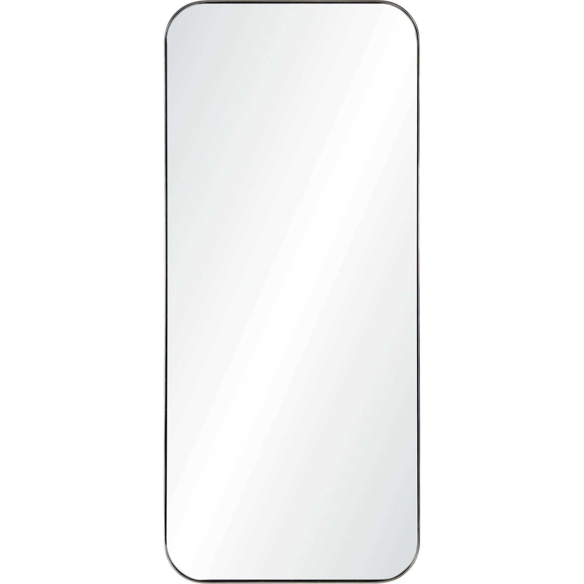 A fresh take on a sleekly styled mirror. The stainless-steel frame in a satin nickel finish adds a modern look to your powder room. The rounded edges of the rectangular design give it a unique appeal.