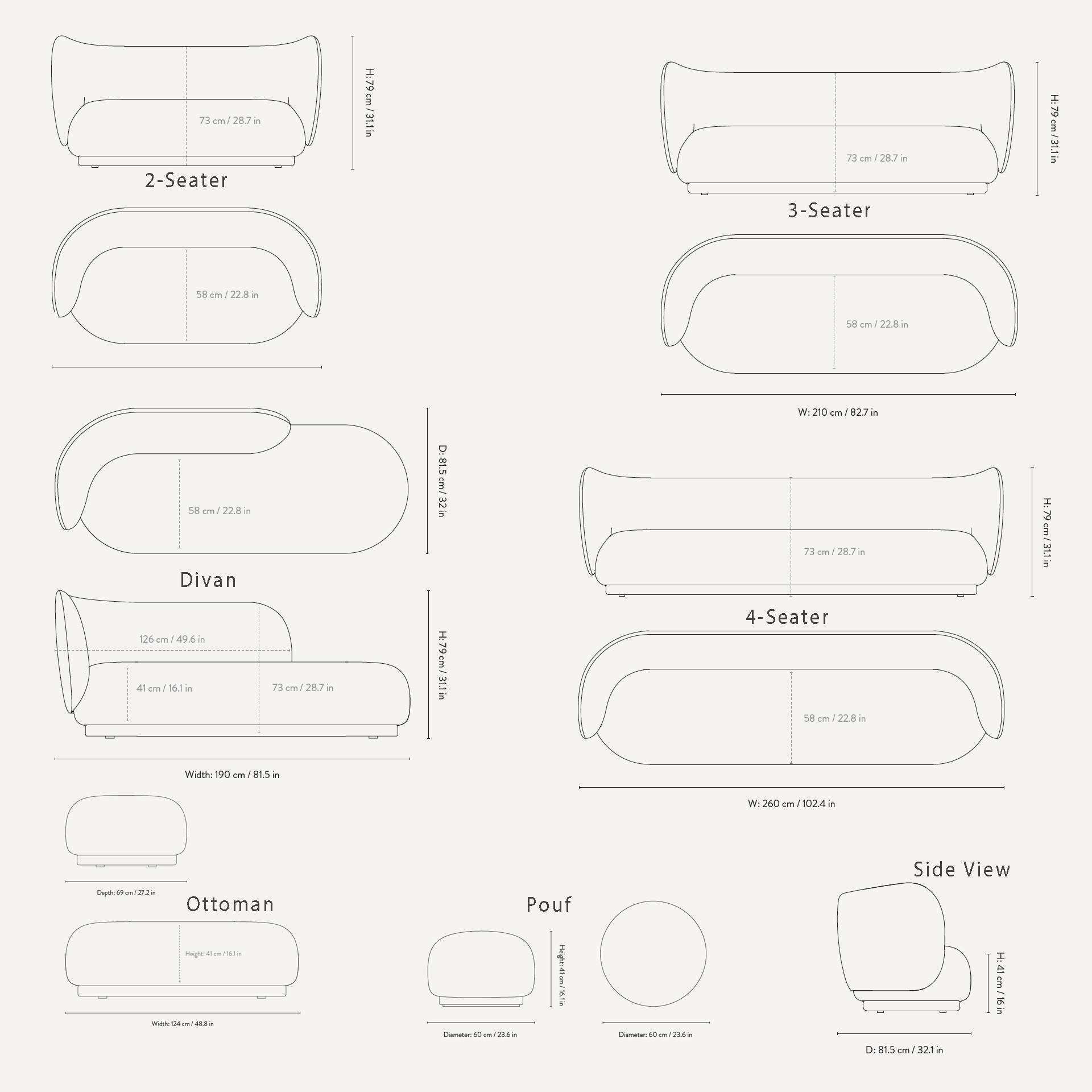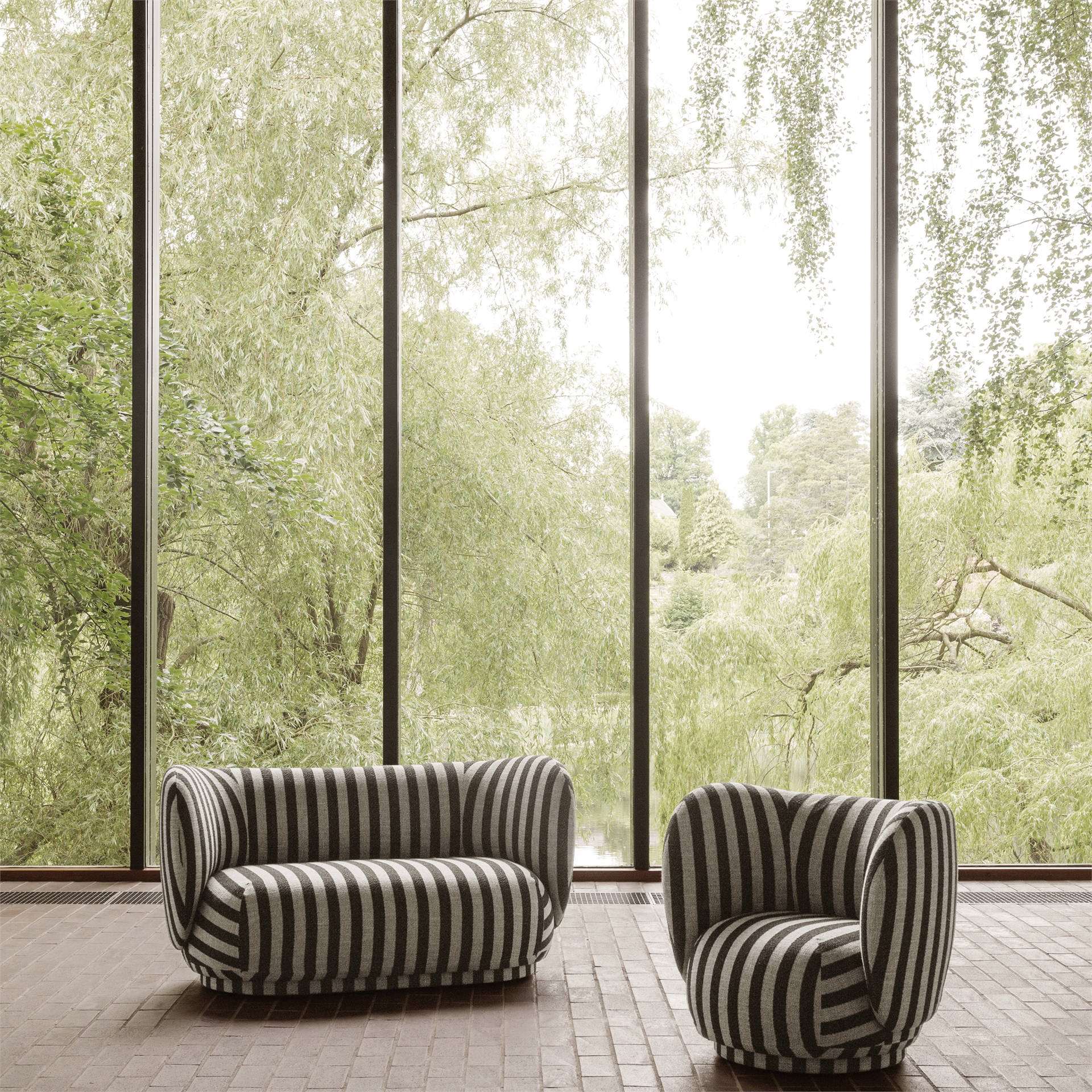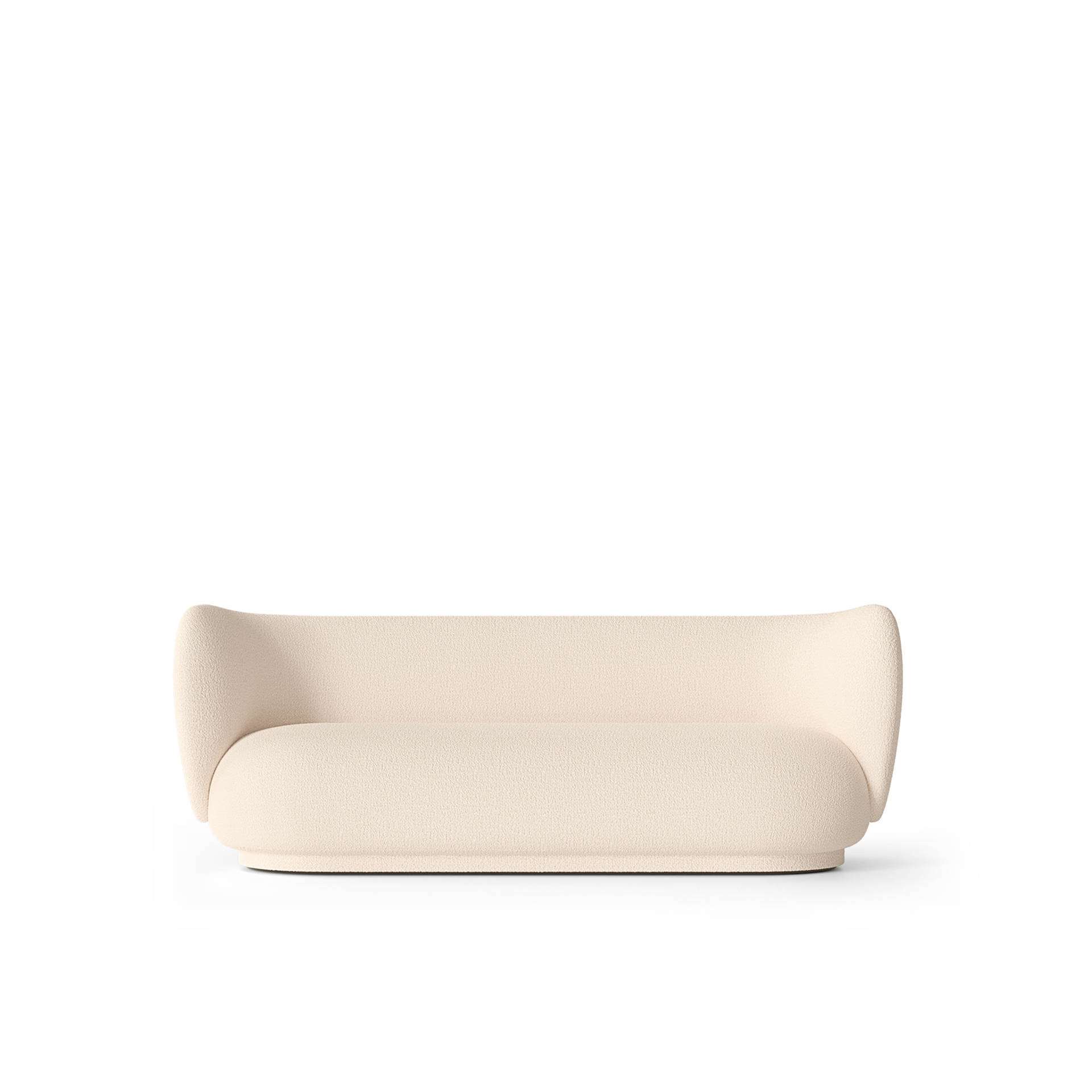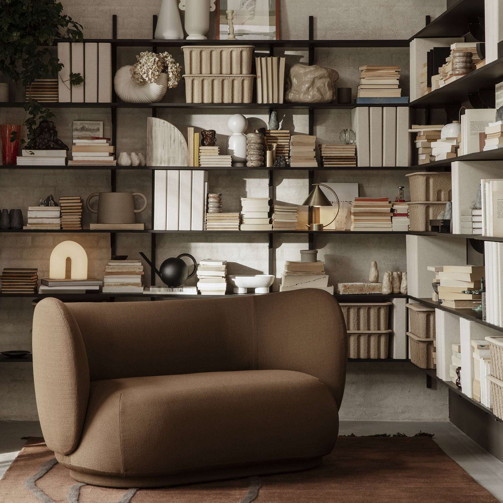 The Rico series welcomes curves and volumes into a classic design defined by soft lines and an embracing expression. Contrasting the sturdiness of the frame, the armchair has an upholstery of timeless, yet easeful bouclé fabric, which is woven of uneven yarn to attain the rich, loopy texture of the surface. The curvaceous nature of the series adds a modern union of comfort and elegance to any room and makes you feel drawn into its motherly embrace.