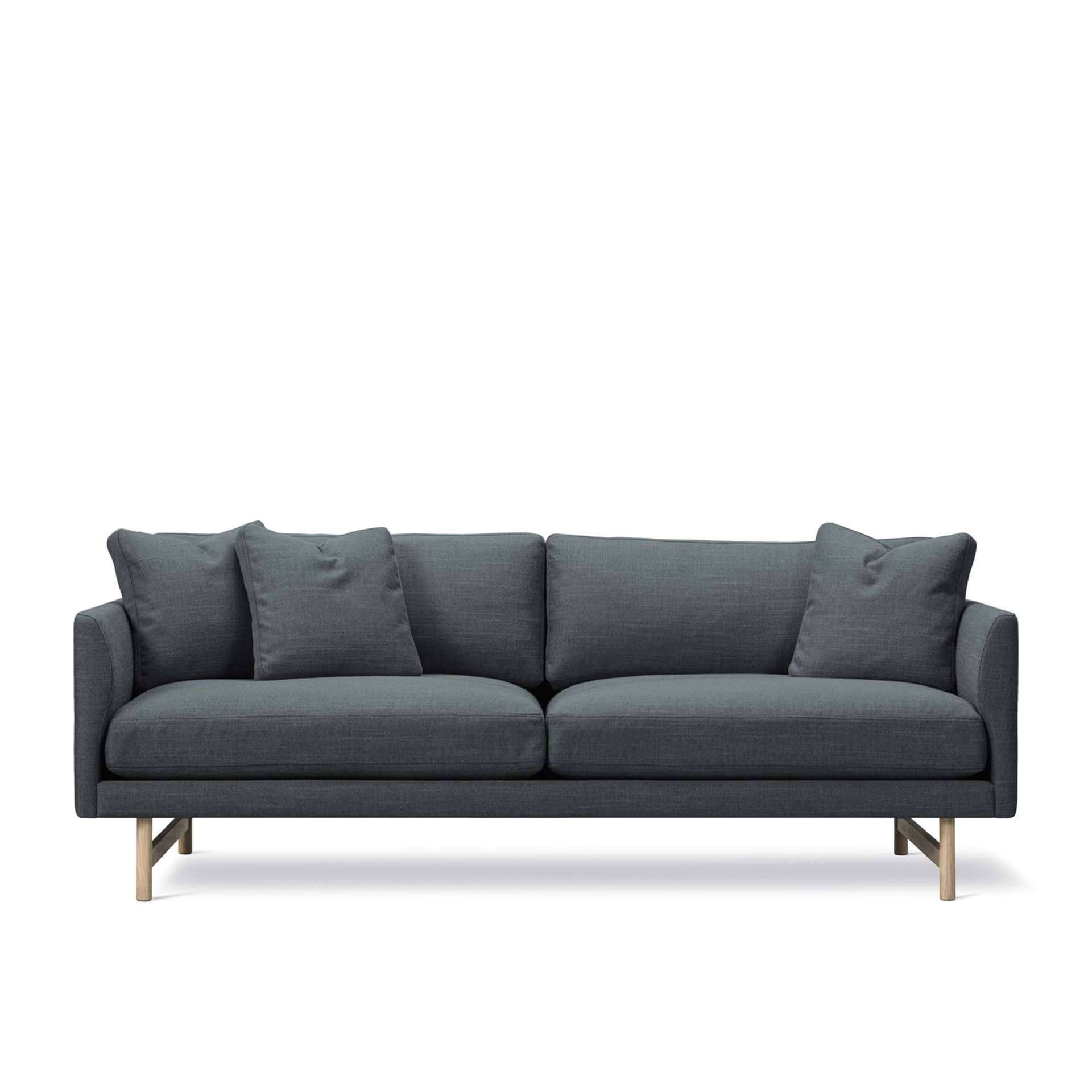 FREDERICIA Calmo Sofa 95 2-Seater Wood Base The look is simple and serene in this expansive 3-seater Calmo sofa, where straight lines converge with discrete curved details. Comfy cushions complete the picture in this understated expression of elegance.