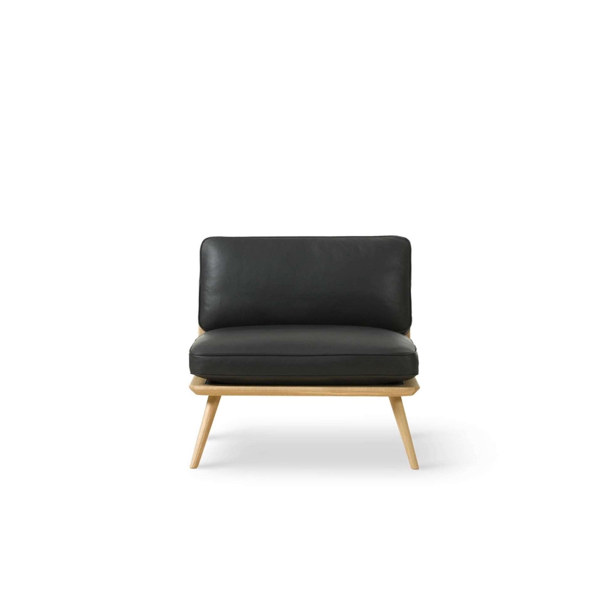 FREDERICIA Spine Lounge Chair The Spine Lounge Suite is a striking example of fluid lines in a solid, concise design that exudes luxury from every angle. Seat and back cushions are supported by a singular structure in solid wood. The detailing on the wooden back makes the chair as attractive when placed in the middle of a space as it is against a wall.
