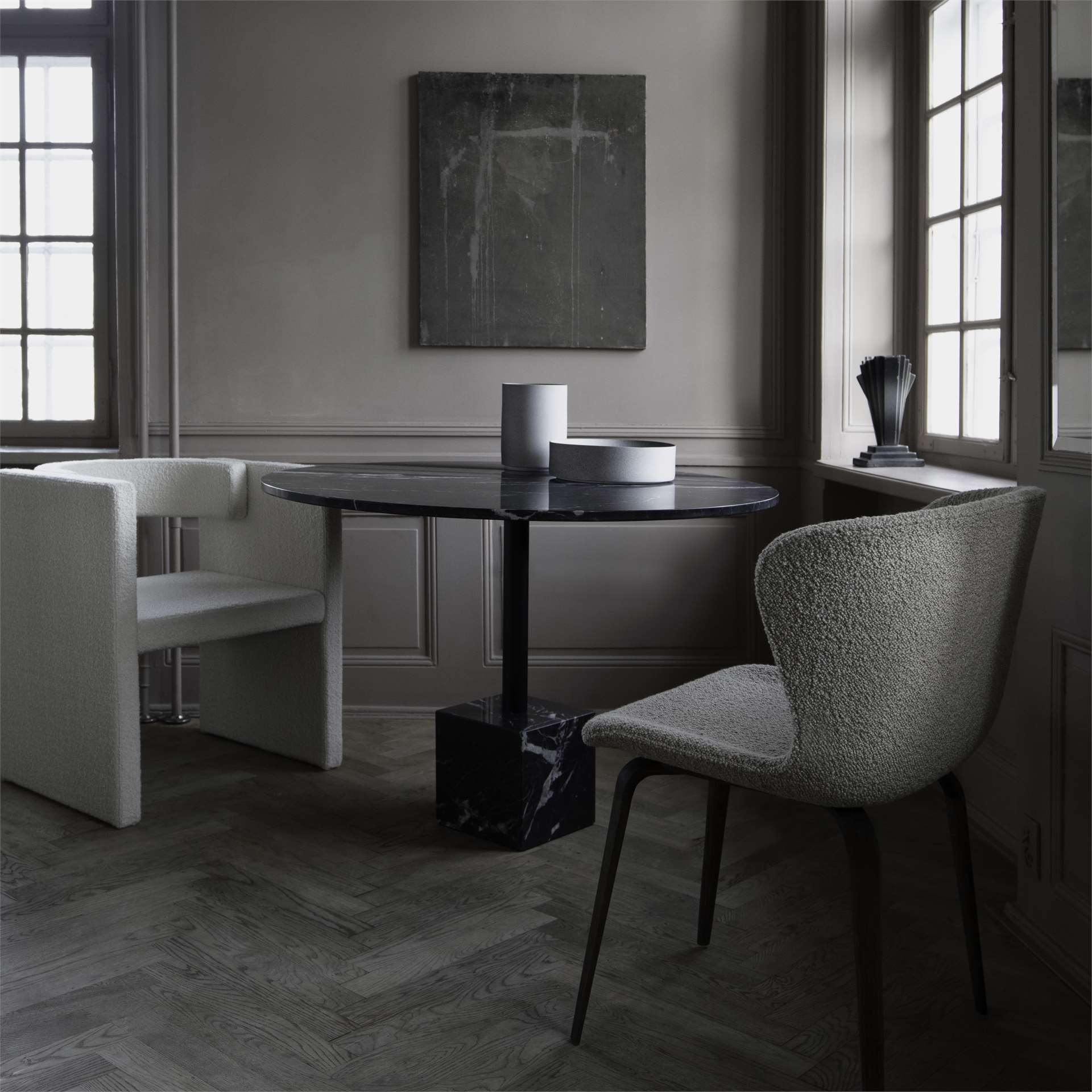 FRIENDS FOUNDERS Pipe Dining Chair Wood - PIPE armchair, fully upholstered. Piping colour always same as back material. Frame available in BLACK / NATURE or SMOAKED wood. Upholstery available in a wide range of fabrics and leathers suitable for contract and residential use.