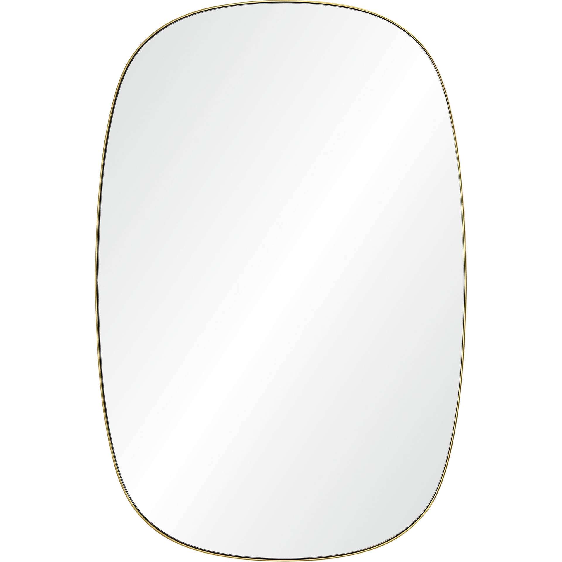This mirror design saves the spotlight for its surroundings, by showcasing a simple structure with great capacity for reflection. Its brushed brass plated iron frame adds flair to the form, while the oval build brings softness. With a 36- by 24-inch build, it allows for entirely new aesthetic opportunities when set horizontally or vertically.