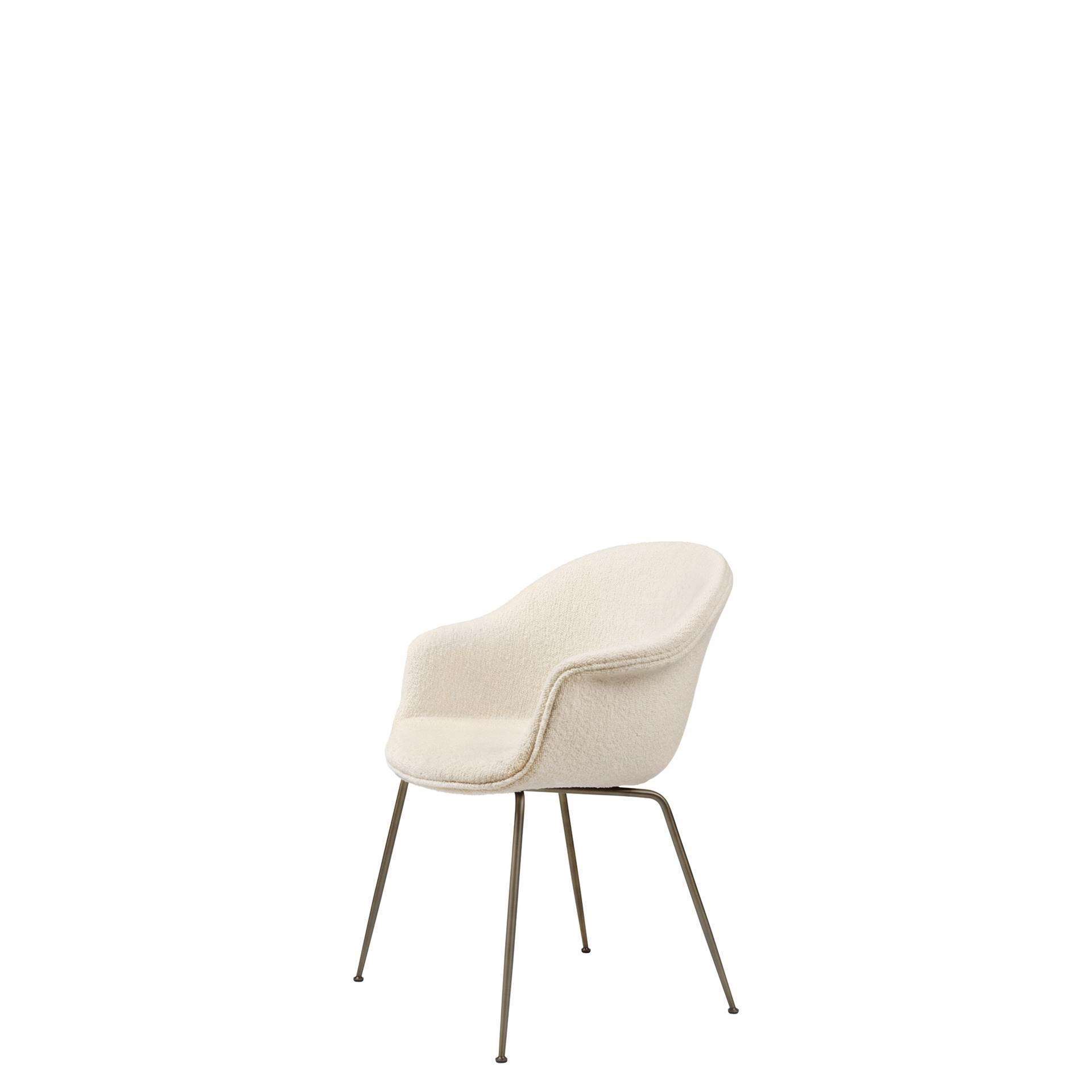GUBI Bat Dining Chair - Fully Upholstered Conic Base - The Bat Dining Chair is created with a Scandinavian approach to crafts, simplicity and functionalism by Danish-Italian design-duo GamFratesi. The embracing shell with armrests equally embodies both aesthetics and comfort while carrying strong references to the interesting and distinctive shape of a bat’s wingspan. The wide range of shell colours, upholstery options and diverse bases provides for a personalised expression that makes the Bat Dining Chair fit perfectly into a variety of public and private contexts. Due to its unique design, the textile of the fully upholstered Bat Dining Chair can be changed with time to give the chair a different expression and new life to the interior decoration.