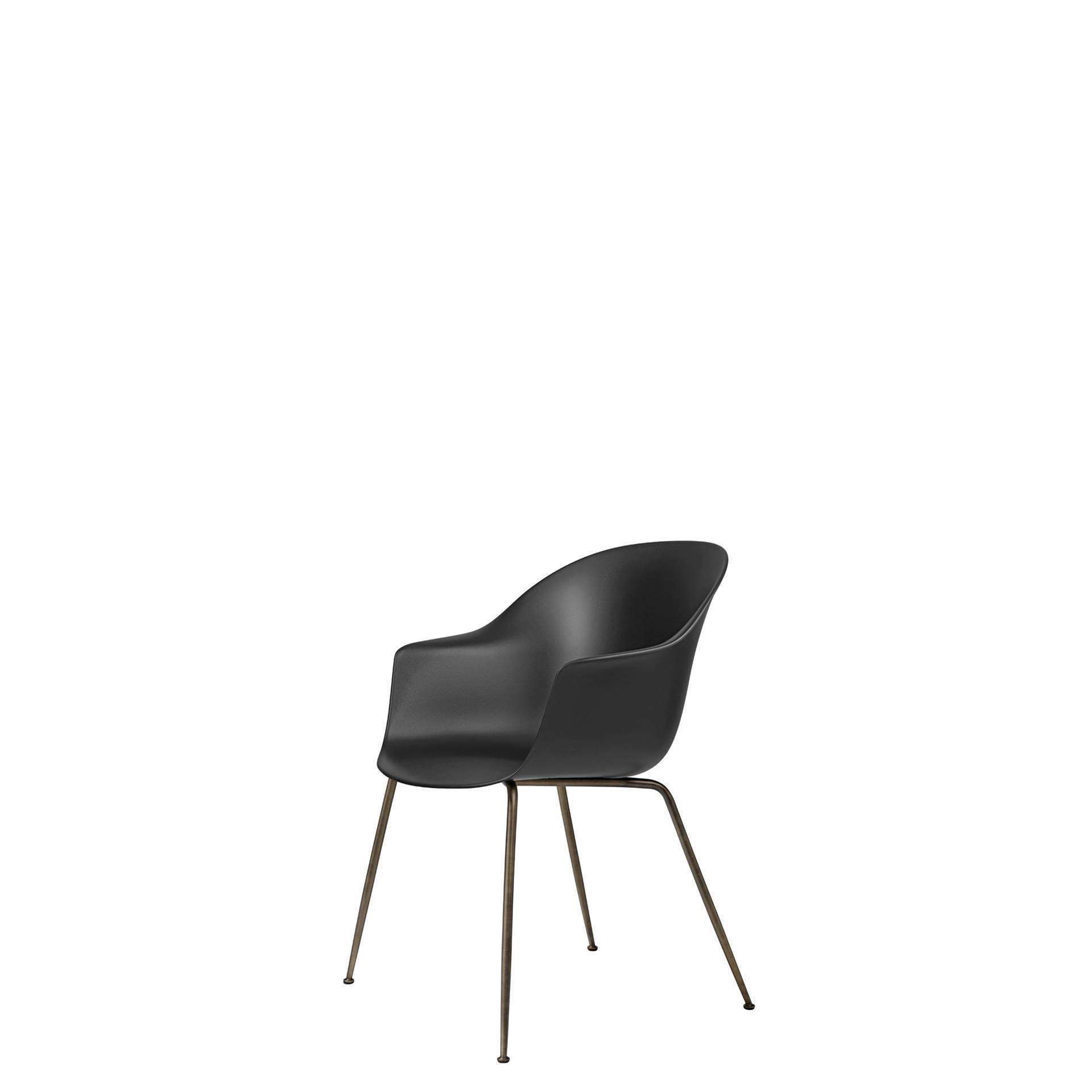 GUBI Bat Dining Chair - Un-Upholstered Conic Base - The Bat Dining Chair is created with a Scandinavian approach to crafts, simplicity and functionalism by Danish-Italian design-duo GamFratesi. The embracing shell with armrests equally embodies both aesthetics and comfort while carrying strong references to the interesting and distinctive shape of a bat’s wingspan. The wide range of shell colours, upholstery options and diverse bases provides for a personalised expression that makes the Bat Dining Chair fit perfectly into a variety of public and private contexts.