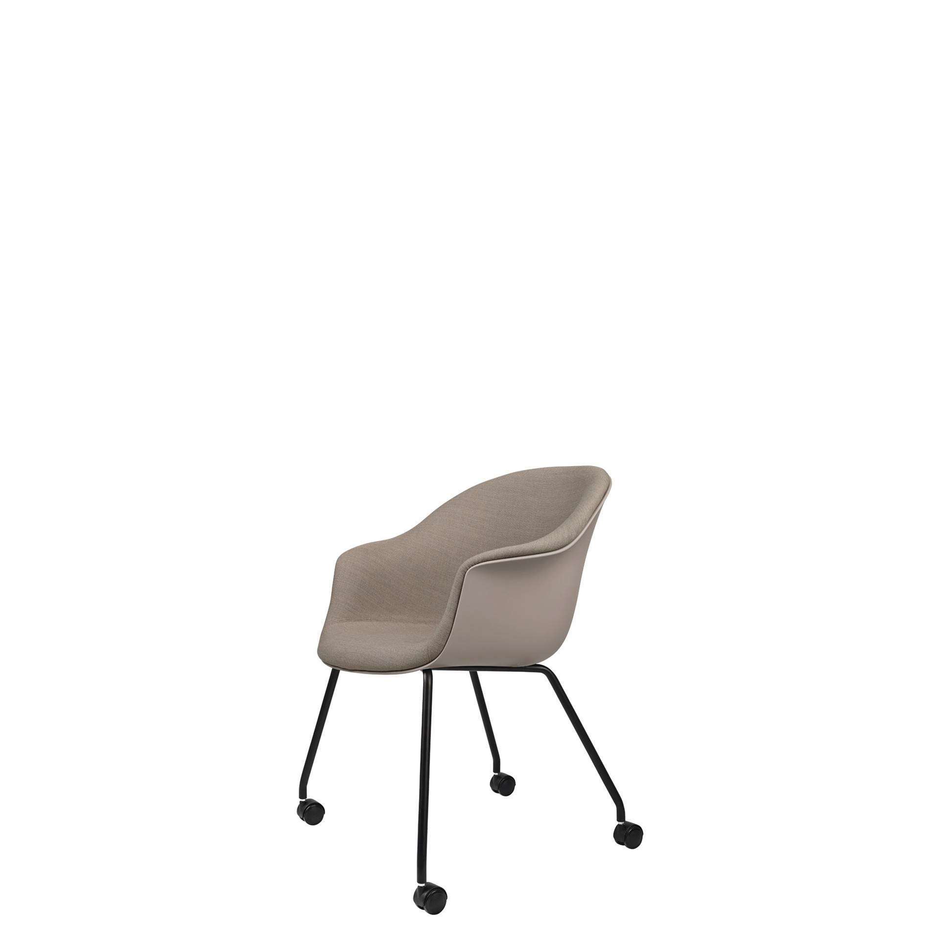 GUBI Bat Meeting Chair - Front Upholstered 4 Legs with Castors - The Bat Meeting Chair fulfils the natural balance between corporate necessity and formal elegance. While the base embodies clean design with great functionality, the fully moulded seat with armrest ensures high level of comfort. The features are paired and provide a sophisticated expression to any meeting room or home office. The wide range of shell colours, upholstery options and diverse bases provides for a personalised expression that makes the Bat Meeting Chair fit perfectly into a variety of public and private contexts. Due to its unique design, the textile of the front upholstered Bat Meeting Chair can be changed with time to give the chair a different expression and new life to the interior decoration. The Bat Meeting Chair is designed by GamFratesi and carries strong references to the interesting characteristics of bats, with its inviting, distinctive shell reminiscent of the shape of a bat’s wingspan.