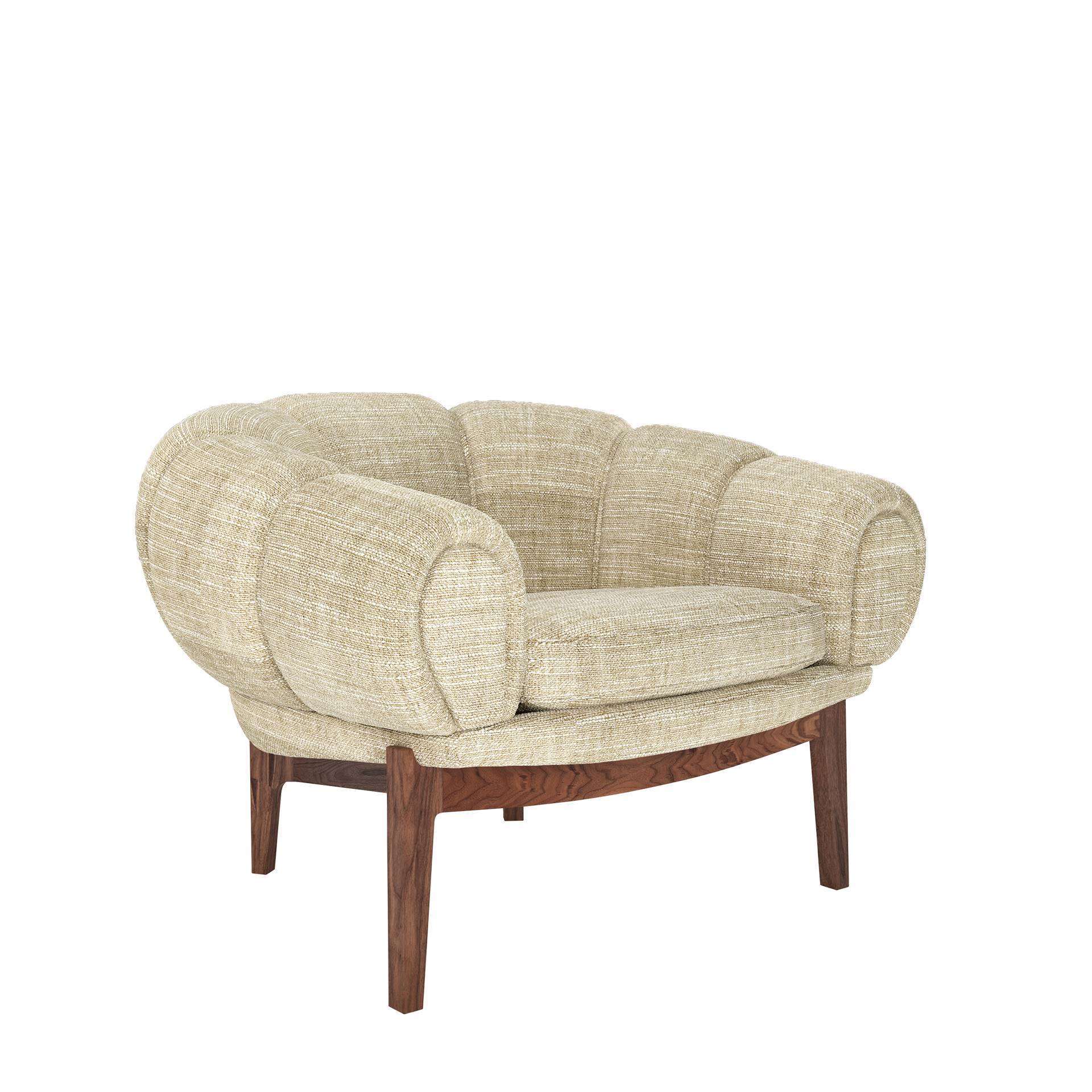 GUBI Croissant Lounge Chair with Fabric - Playful, voluptuous and sublimely crafted, the newly reimagined Croissant Lounge Chair makes a powerful statement in any interior setting and an heirloom to treasure for generations.
