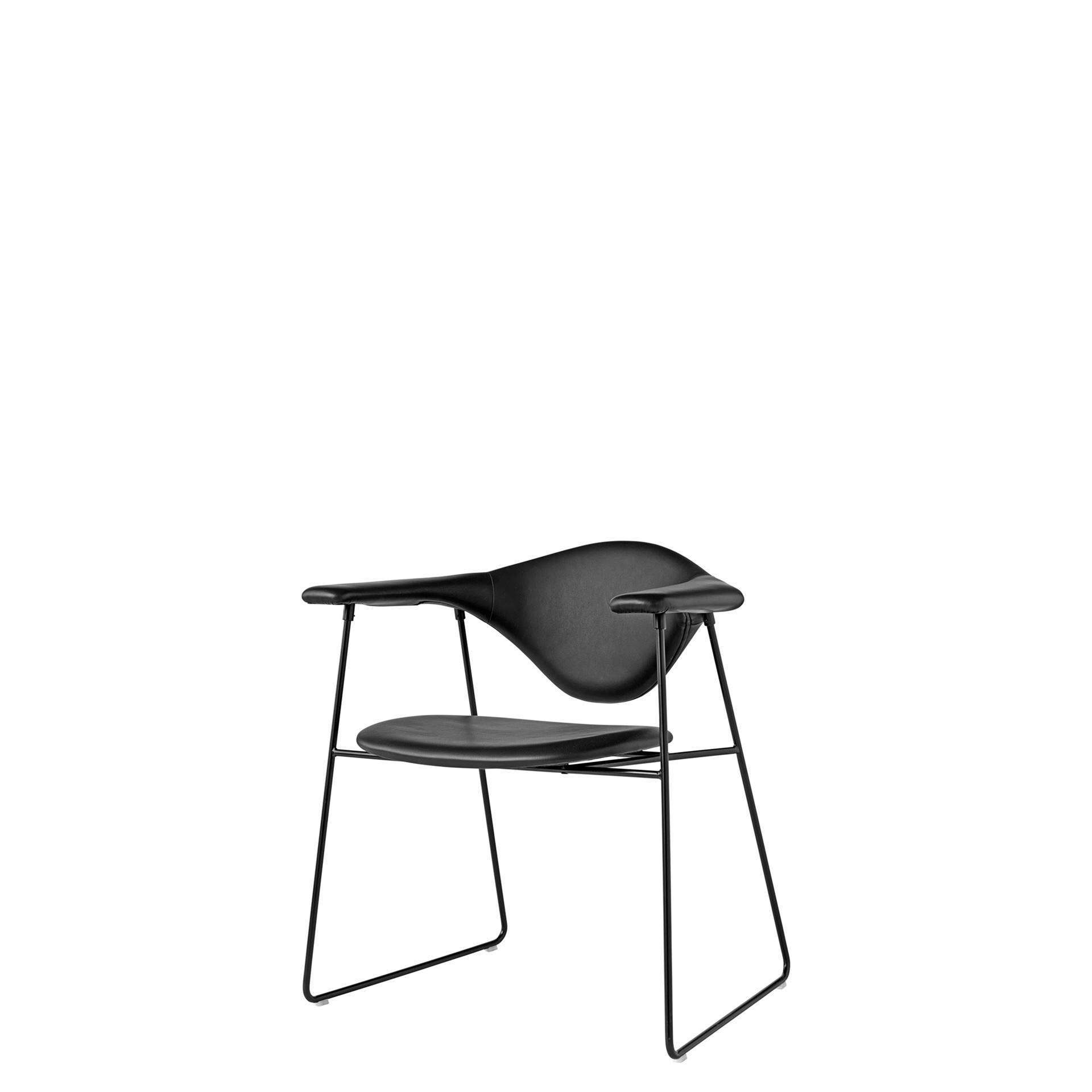 GUBI Masculo Dining Chair - Fully Upholstered Sledge Base - Designed for the fine dining restaurant Copenhague at Maison du Danemark in Paris, the four-legged Masculo Dining in metal marry the idea of Danish elegance and simplicity with Italian refinement and playfulness.