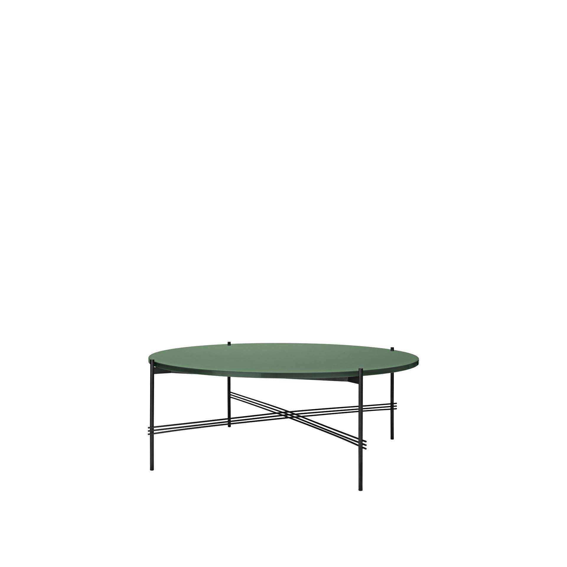 GUBI TS Round Coffee Table - 105 Black Base - The TS Coffee Table creates a sophisticated and sculptural aesthetics for any room with its characteristic slender legs, beautifully crossing details and contrasting solid circular table top.