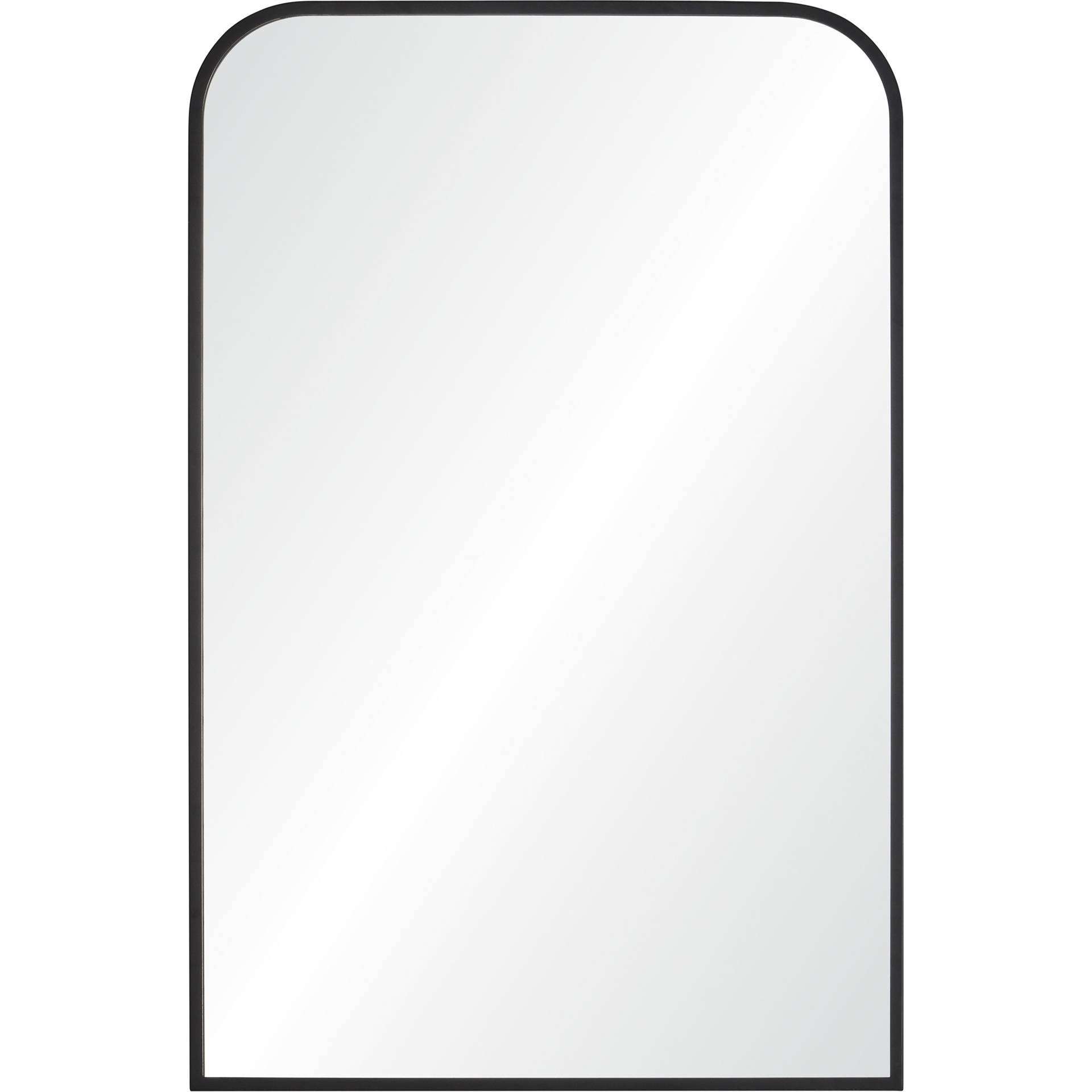 Harsh and soft angles intertwine in this mirror design. Cast in the contemporary space, it can integrate into the interior while making a stylish statement. An iron structure with a matte black painted finish, it easily ties all the other décor accessories together.
