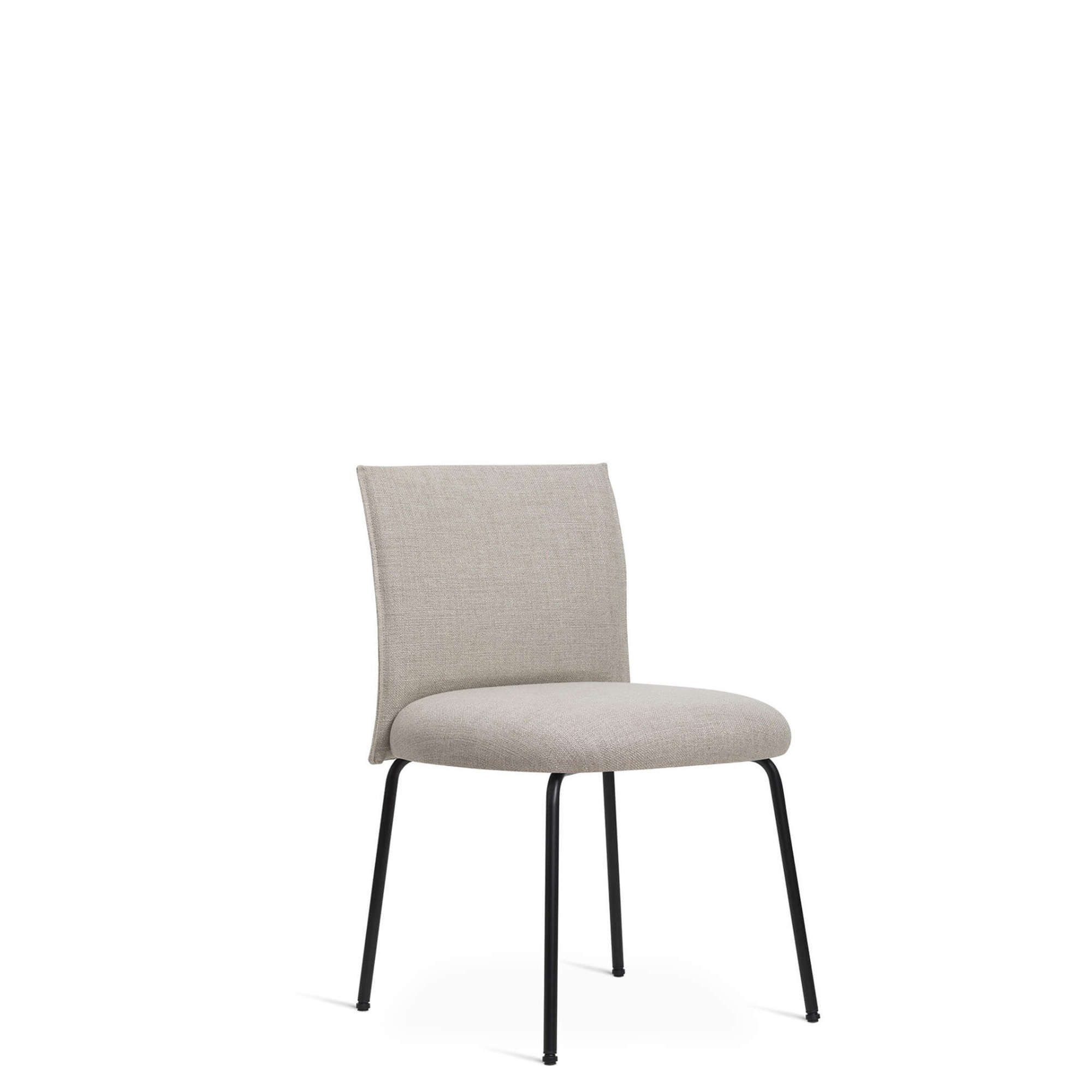 Chair and armchair with a soft and enveloping design. Its distinctive feature lies in the lines of the back connected to the seat, creating an unexpected movement. Upholstered in fabric or leather, with metal legs, Ayra is a transversal design to meet different aesthetic needs. A highly contemporary seat in proportions, ideal around a majestic dining table.