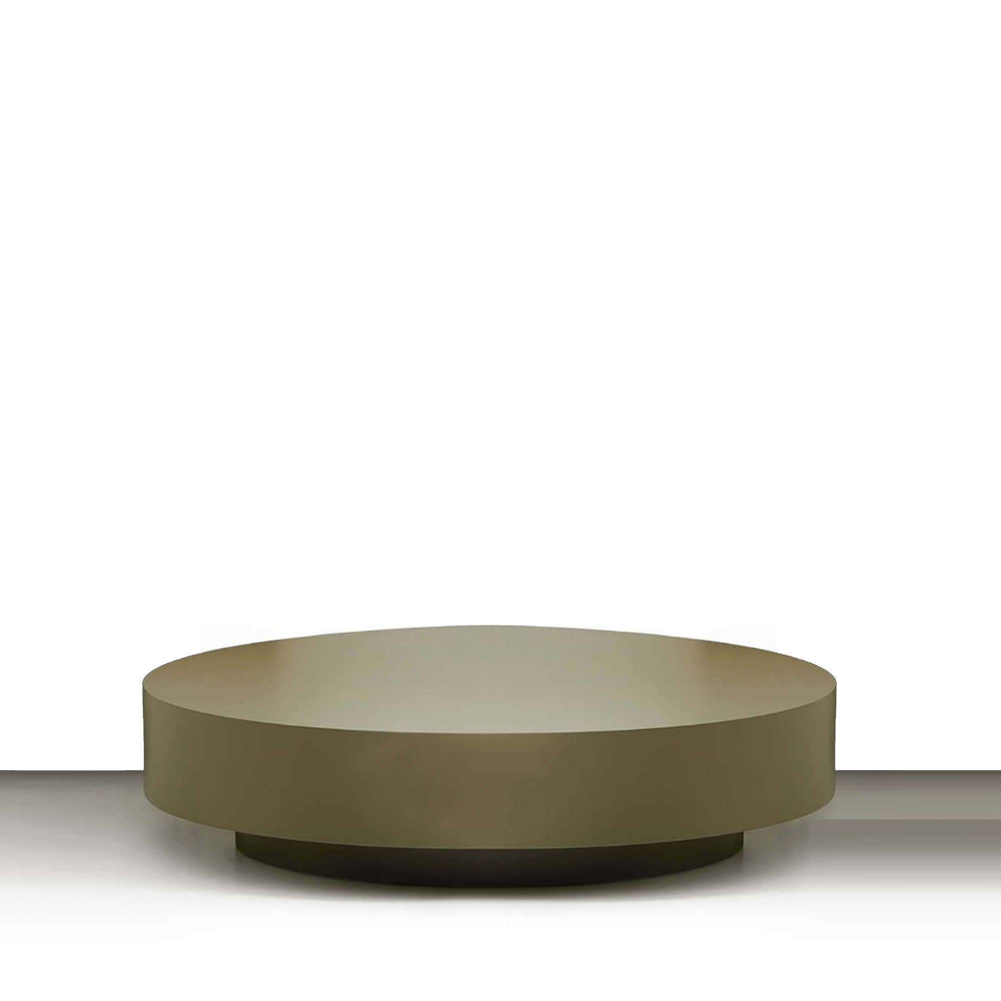 Dolmen is a family of coffee tables characterised by tops with natural geometric shapes - rectangular, square or round - to be freely composed between eachother. Available in various sizes and heights, they are designed for the living area next to sofas and they find their maximum expression in articulated compositions. The structure is in bronze painted metal, while the tops are available in matt lacquer or wood.