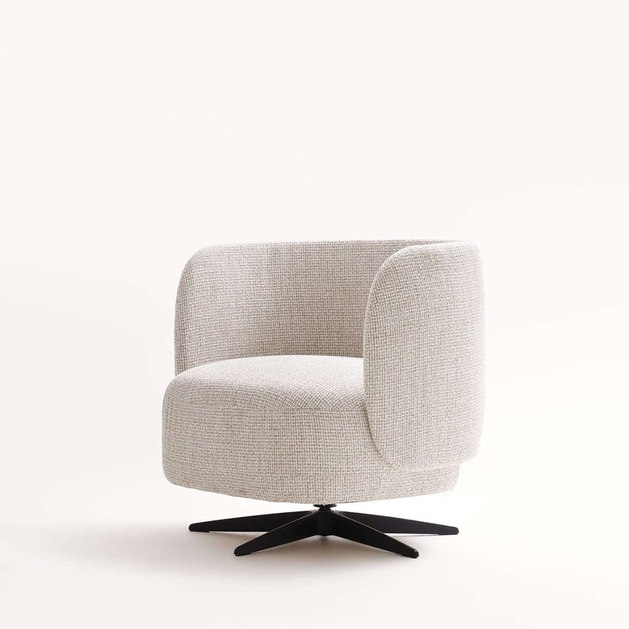 The Miki armchair designed by Pierattelli Architetture embodies the ideals of softness, comfort, and dynamism. Miki consists of a substantial seat cushion enclosed by a padded, curvilinear, and protective shell that, extending itself, surrounds and envelops the seat, serving as both backrest and armrest. With its curvilinear flow, it embraces the body, transforming the armchair into a private and welcoming refuge. Defined by its compact dimensions and high backrest, Miki elevates the central die-cast aluminium pedestal as a distinctive element, making the armchair even more versatile in its use. The armchair features a swivel mechanism that gives the seat a dynamic character and enhances its interaction with the surrounding space. Upholstered in fabric, leather, or vegan leather, Miki is a versatile and harmonious armchair ideal for those seeking a modern and refined taste without compromising on comfort and well-being.