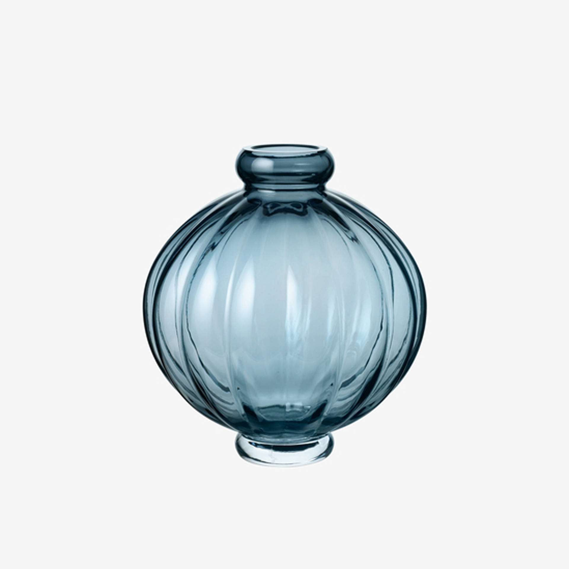 The Blue Balloon Vase radiates serenity and tranquillity. It contributes to the peaceful and orderly ambience of the setting in which it is placed. xxxThis graceful series owes its title to the artisanship behind the mouth-blowing glass technique, by which the vase attains its alluring shape and outer exterior. This methodology involves expanding the fine material in a manner resembling the process of blowing up a balloon - perceptible in the object's sculptural characteristics.xxx*Delivery 7-10 days only while quantities are in stock