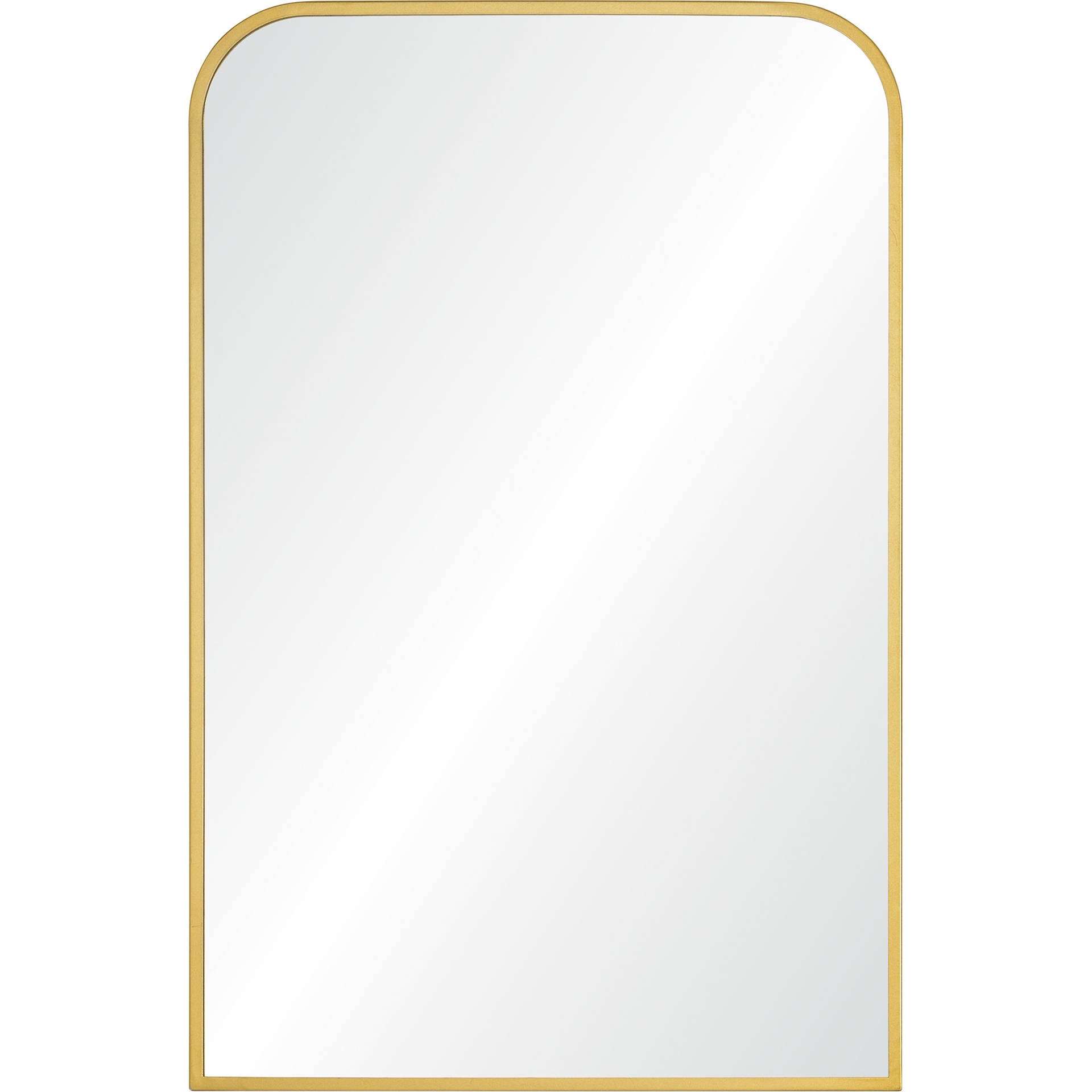 Possessing a modern and timeless quality at once, this mirror complements decor elements in its vicinity while making a stylish statement of its own. At 24 by 36 inches, it holds idyllic dimensions to rest atop a vanity or dresser. With a gold powder-coated iron frame, it is an optimal fit within a mid-century modern interior, with the ability to go classic when styled for such.
