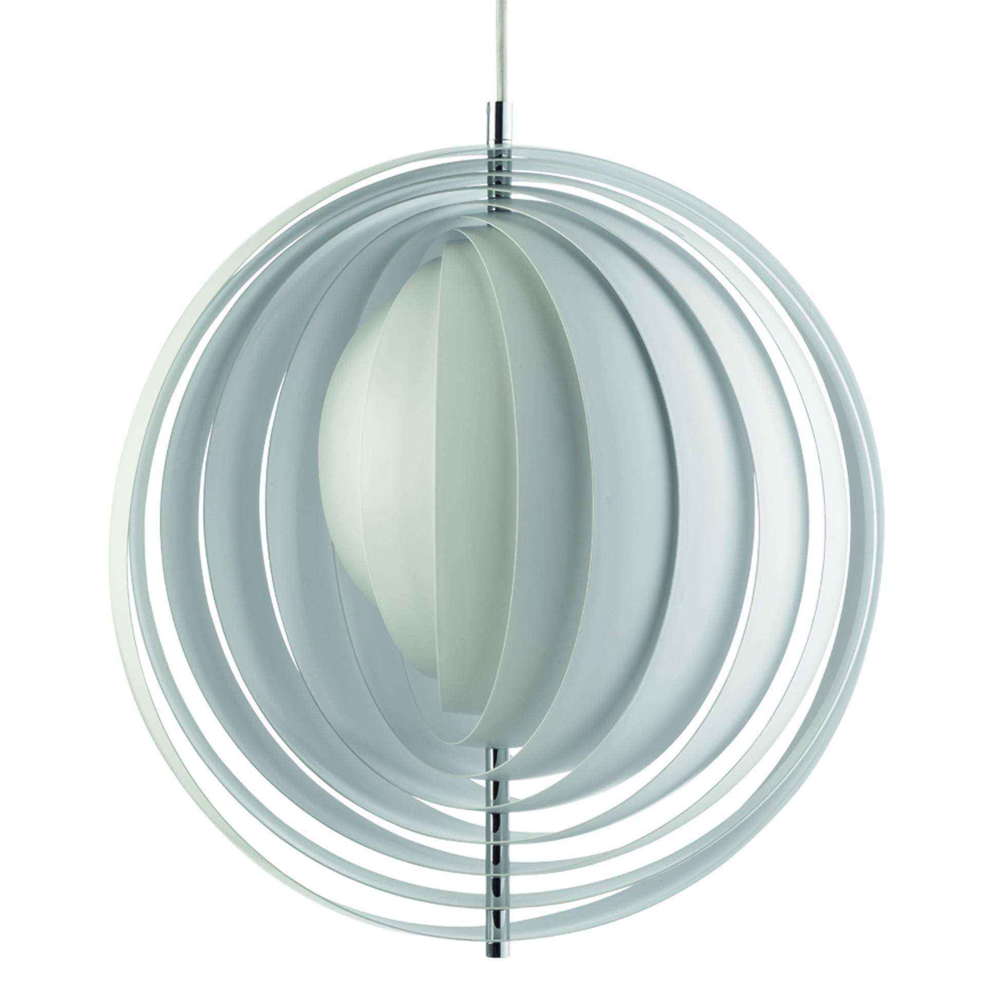 VERPAN Moon Pendant Large - Spherical pendant made of vertical metal lamellae, arranged like a fan, for individual regulation of the light. Mounted with a ceiling canopy with the same finish as the lamellae.