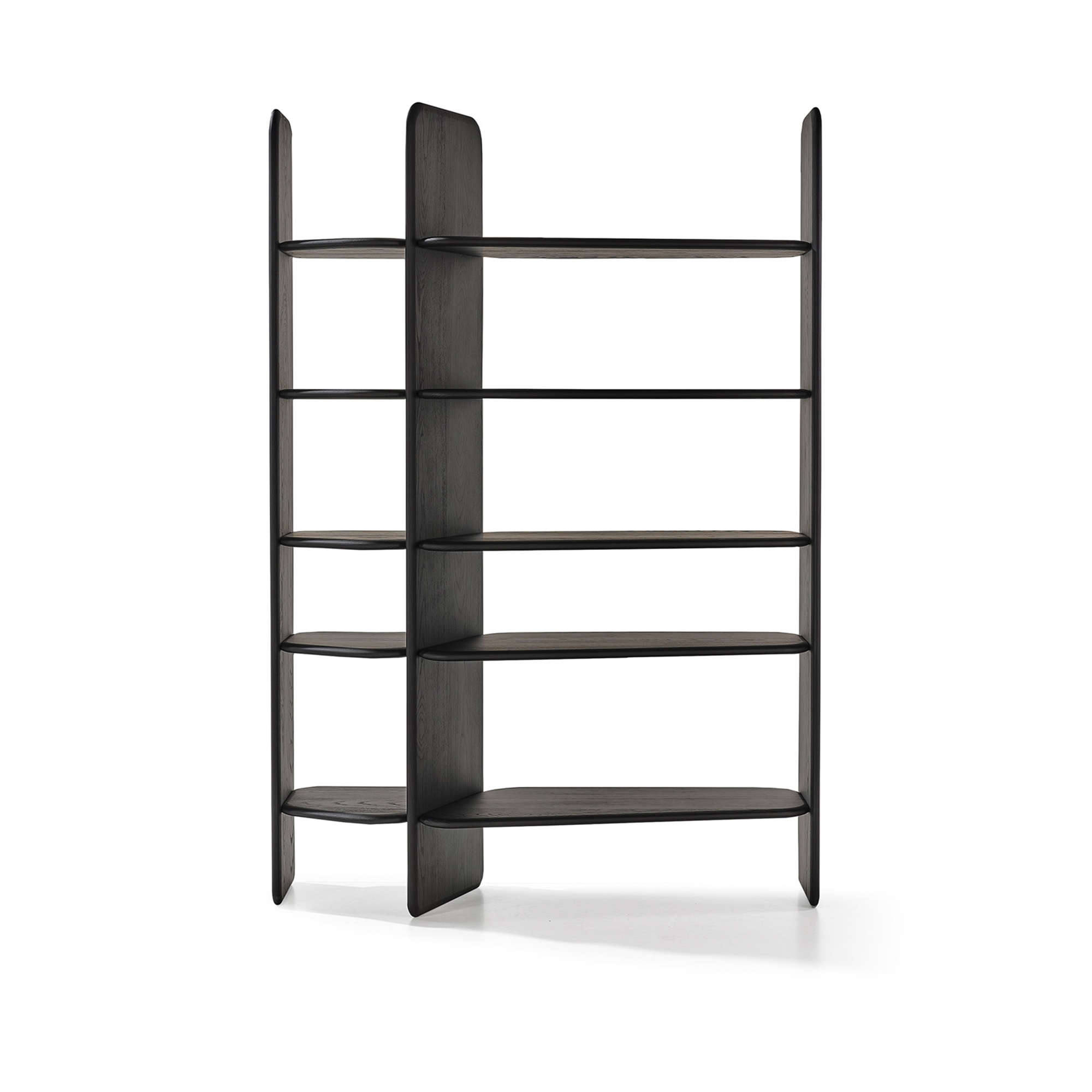 The basic idea of the Nook bookcase is to play with shapes and combine different modules to create various visual effects. It can be configured with three modules of different sizes, leading to dynamic compositions. The harmonious, rounded lines of the bookcase also make it perfect for use in the middle of the room, such as a divider for open spaces. This solid wood bookcase has a decidedly evocative character that rounds out any environment like a decorative item.