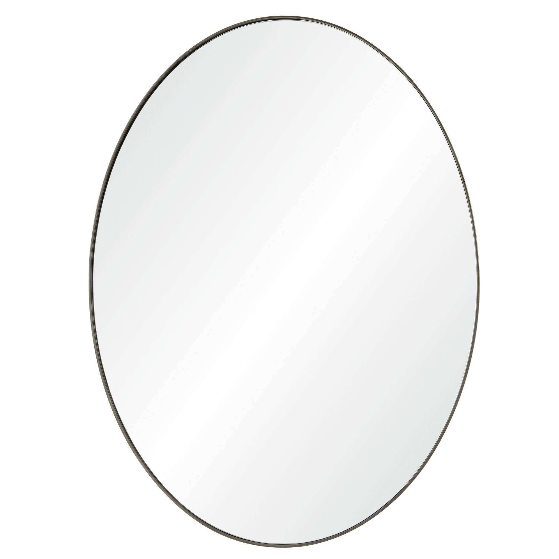 The sleek Scandinavian profile of this oval wall mirror is elegant and understated. The oval mirror features an antique brushed silver finish that adds a subtle shimmering patina to the iron frame. The curvature of the elongated mirror shape disrupts the linear angles of traditional architecture, with an elliptical format that’s designed to inspire.