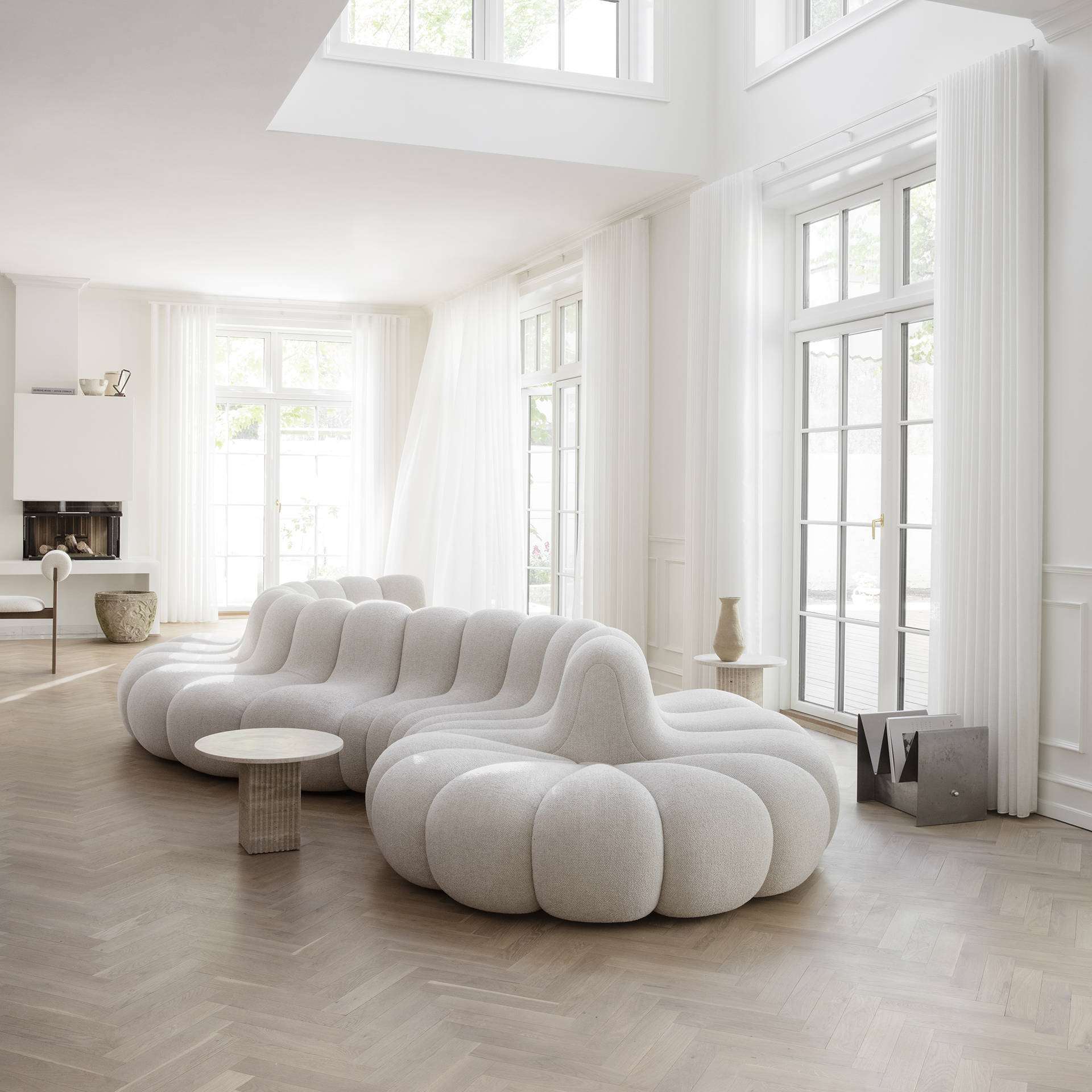 Inspired by iconic 70s furniture design and sunken lounge interiors, reinterpreted in a fresh and contemporary way. Suitable for all interiors with endless possibilities and combinations of modules to create a dreamy and fluid space.