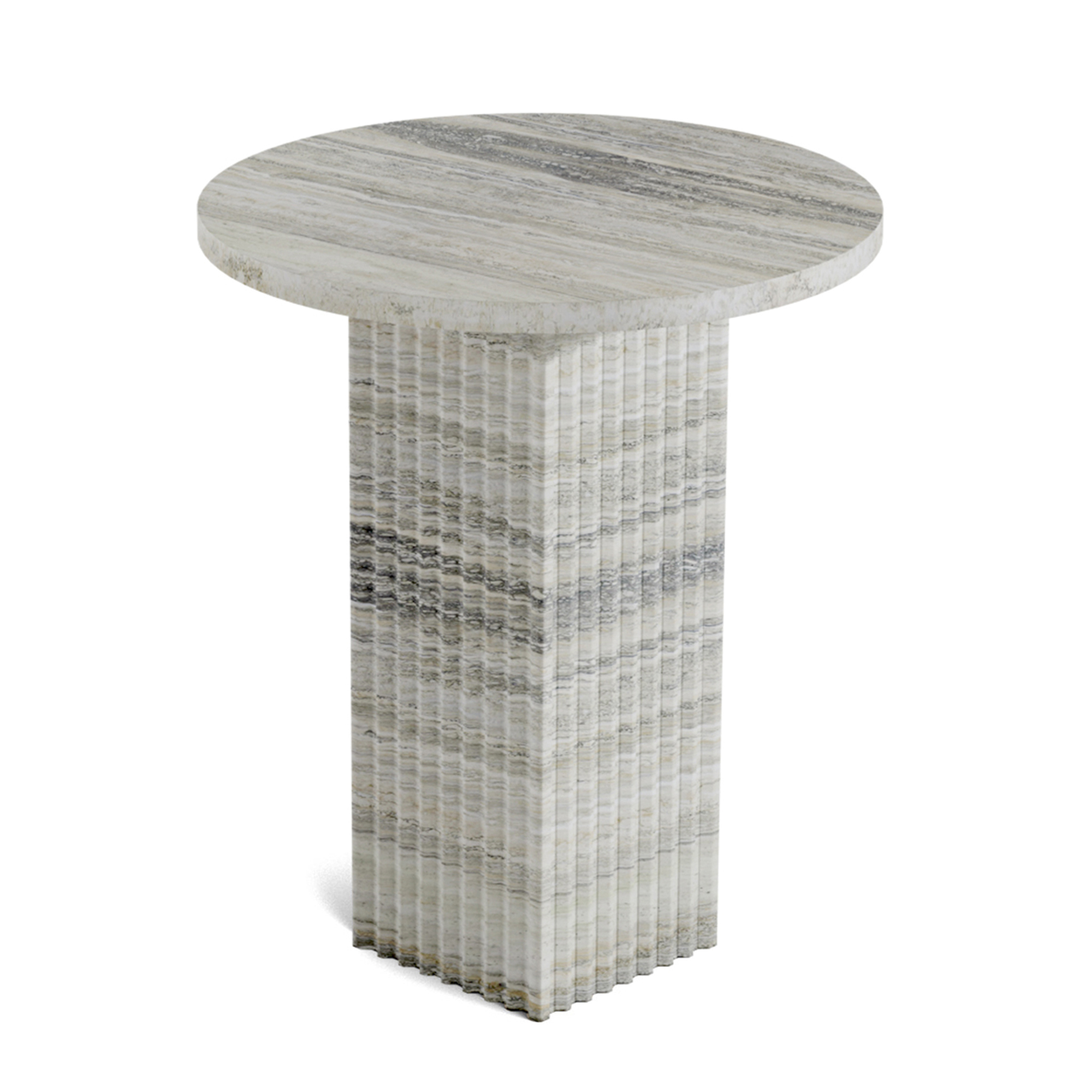 The Soho Table embodies the essence of architectural craftsmanship, drawing inspiration from the distinctive facades in SoHo, New York. The idea for the design was sparked during a stroll through the neighborhood, where the fluted building facades left a lasting impression and is directly reflected in the fluted column that forms the core of the table. The fluted surface adds tactility but also creates a dynamic and shifting interplay of depth and shadows throughout the day, depending on how the light falls upon it.