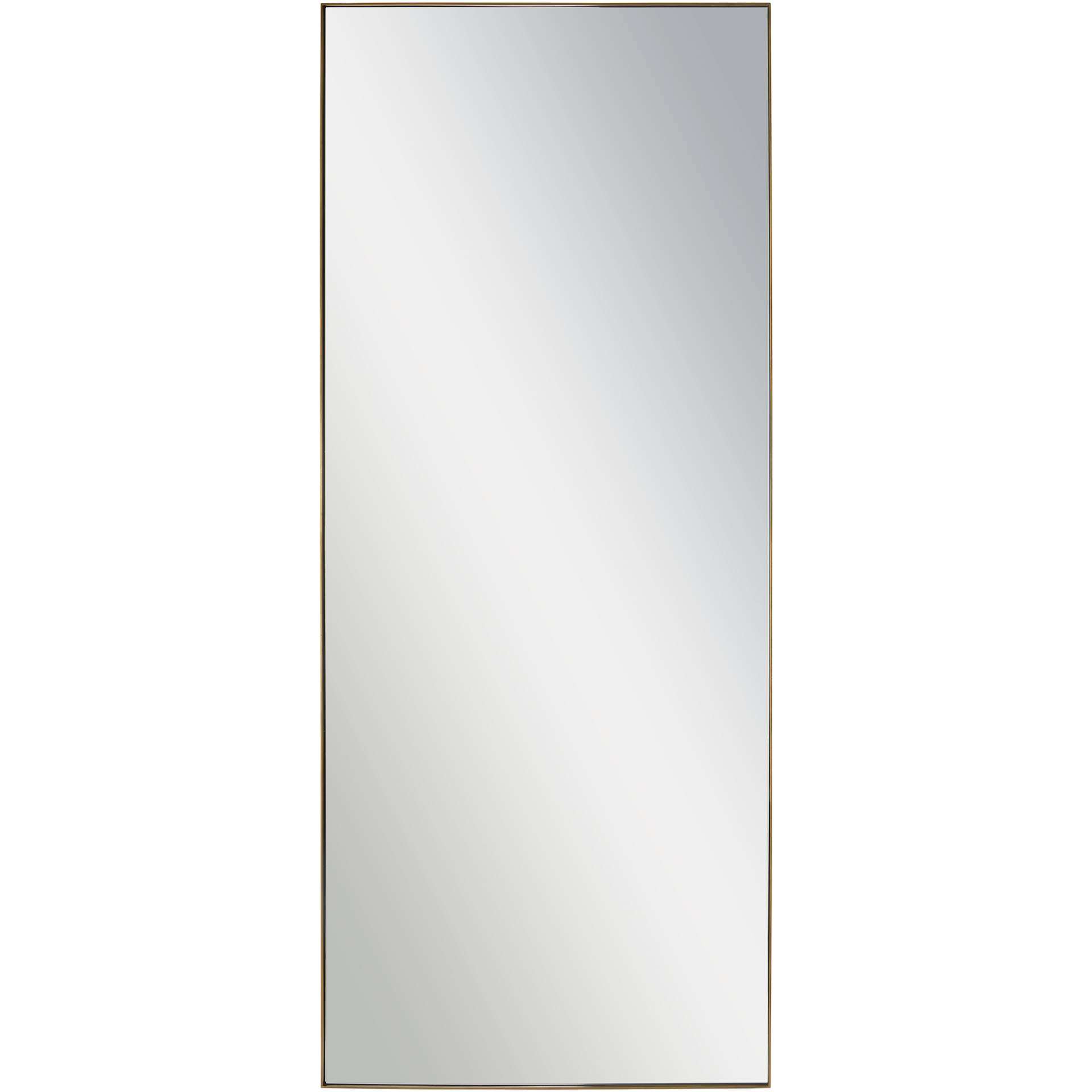 An antique brass finished iron frame brings a chic quality to this classic floor length mirror design. Set in the mid-century bedroom, it will reflect beauty at every angle. Pair with vivid tones for the ultimate impact.