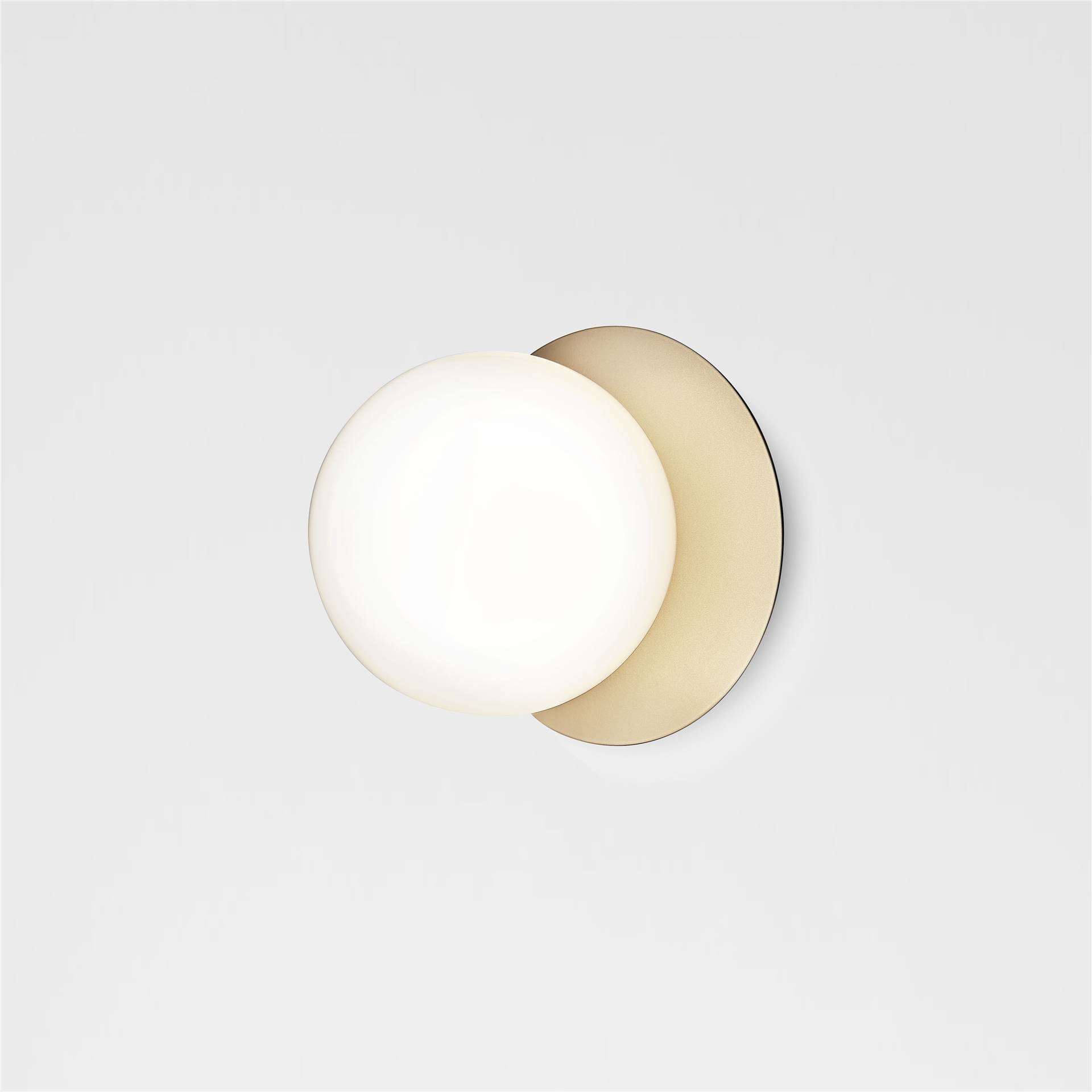 NUURA Liila 1 Medium Wall-Ceiling Gold Opal - Liila Collection has a Nordic simplistic yet interesting look due to the fine reflections in the glass and metal. The mouth blown glas is elegantly framed by the metal disc in soft metallic finish. The Opal White glass completes the minimalistic Nordic look.