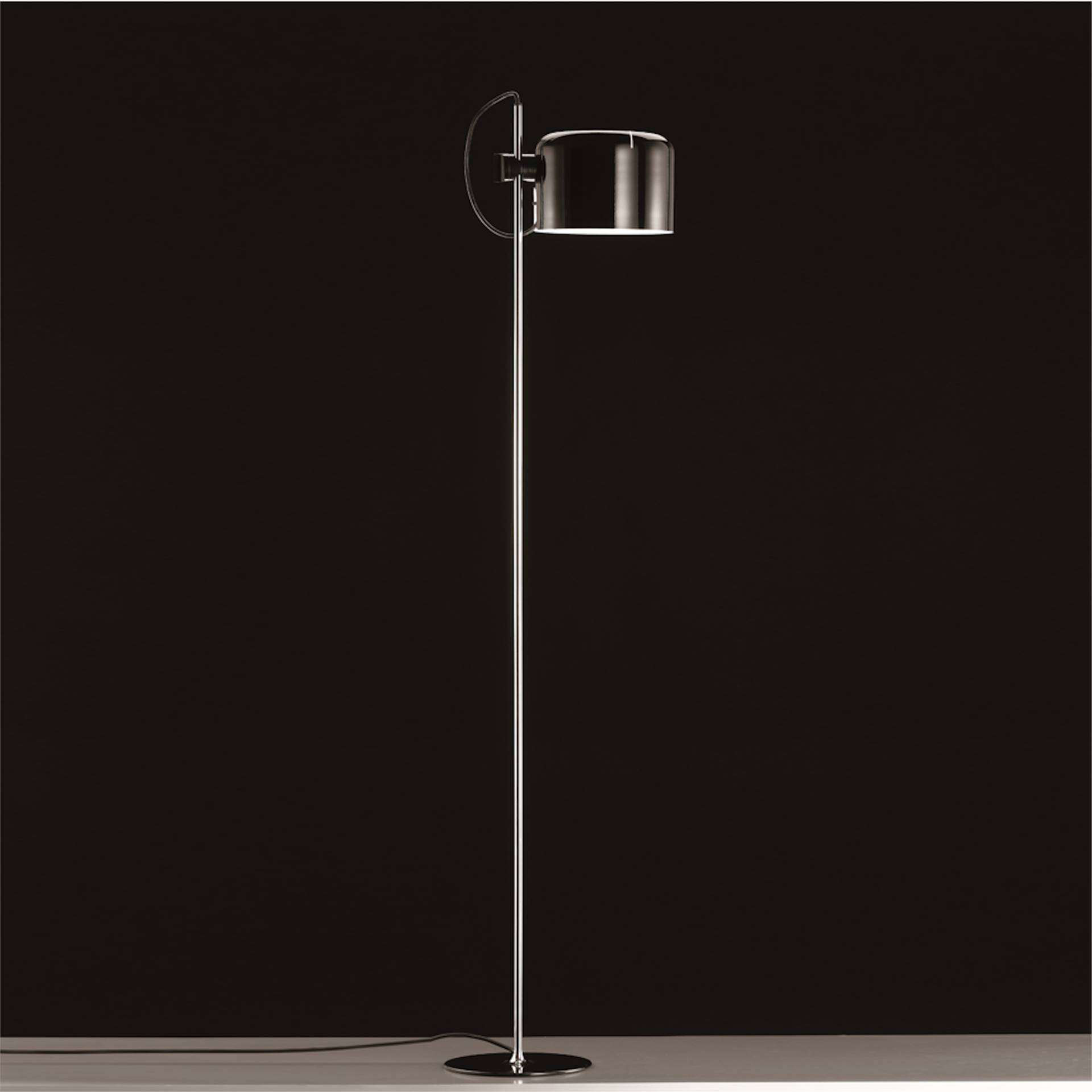 OLUCE Coupe Floor Lamp - The Coupé Floor lamp is made of metal lacquered base and structure, chromium-plated stem and adjustable reflector in lacquered aluminium. The simple, ingenious mechanism that connects the stem to the head makes it possible to direct the beam in several directions, by moving the dome up, down and sideways. In 1968, Coupé won the ”International Design Award” of the American Institute of Interior Designers in Chicago. It is part of the permanent collection at both the MoMA in New York and the ”Neue Sammlung” Museum in Munich.