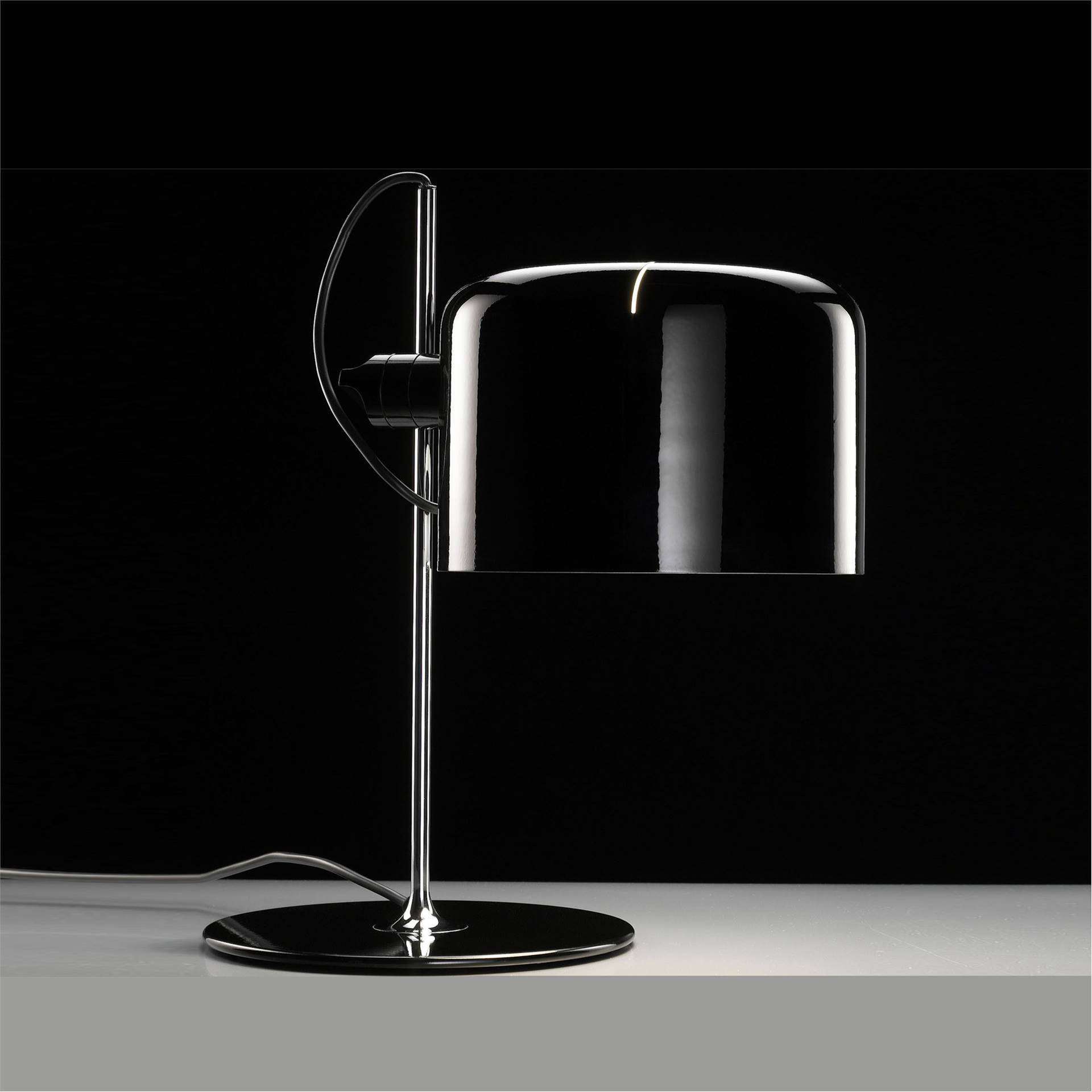 OLUCE Coupe Table Lamp - The Coupé series, designed by Joe Colombo, was initially conceived as a variation of the Spider family, created by the same designer, of which it has kept its base and stem. The simple, ingenious mechanism that connects the stem to the head makes it possible to direct the beam in several directions, by moving the dome up, down and sideways.