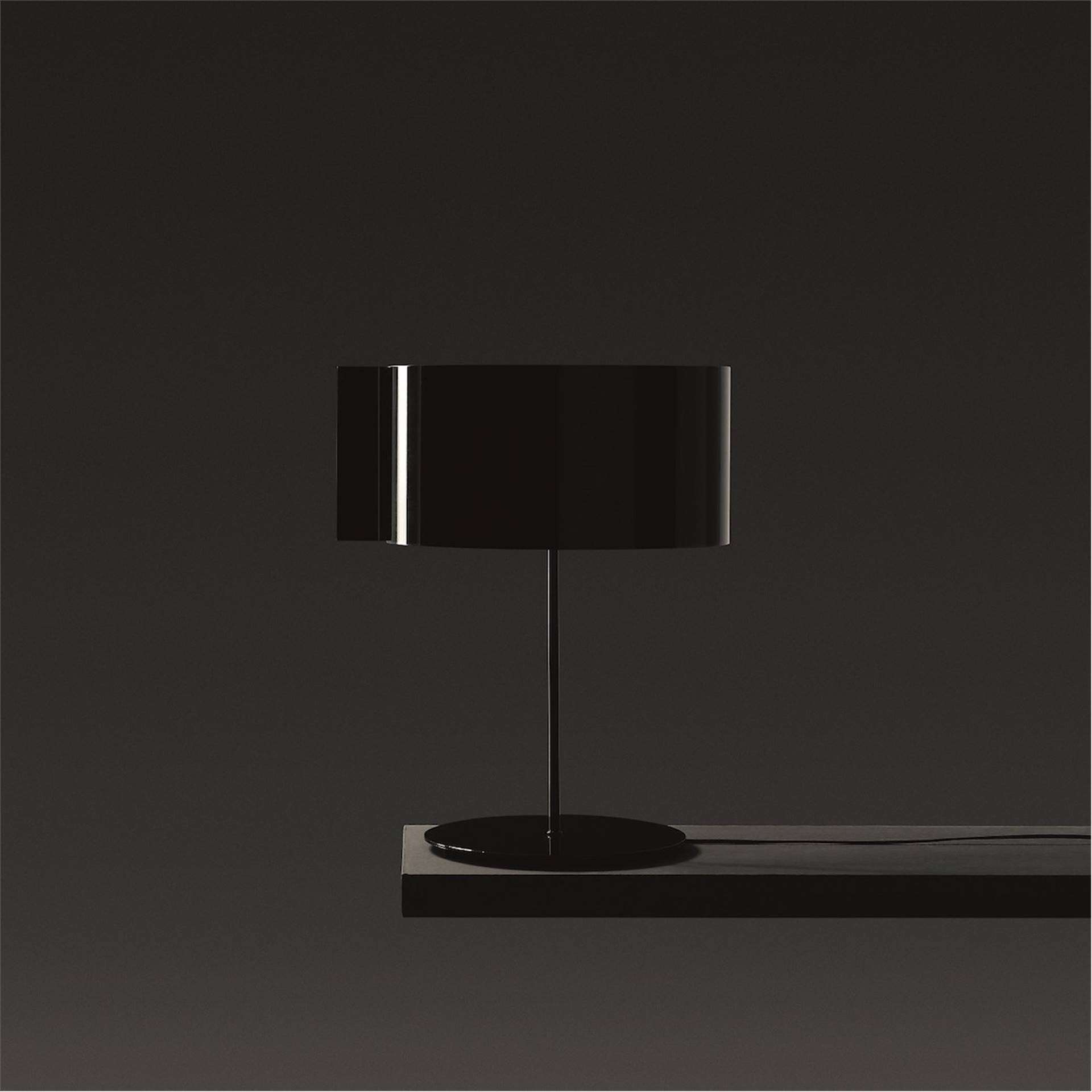 OLUCE Switch Table Lamp - By means of the Switch lamp, the Japanese designer Nendo, revisits the shape of the classic abat-jour by renewing both its materials and its function. The archetypal shape of the cylindrical lampshade is transformed by using metal while its function as a diffuser is combined with that of a ‘switch’, hence its name. In fact, the lamp is switched on and off by turning the sheet metal lampshade, inextricably blending shape and function, aesthetics and functionality.