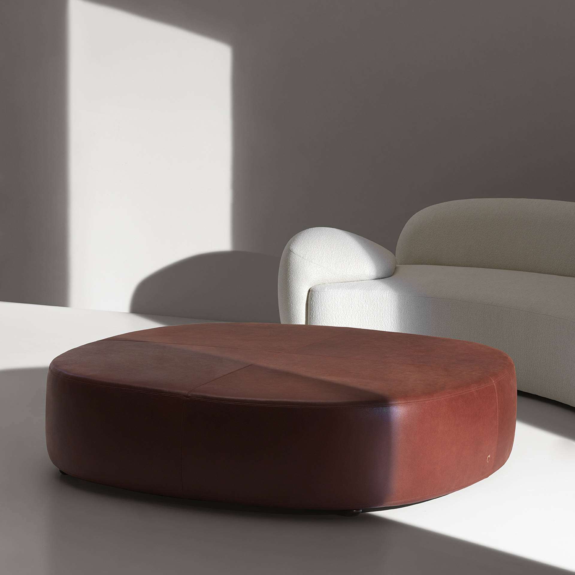 A very cosy feeling given by the generous padding and sophisticated details that soften the geometries. The Ama seating collection is distinguished by the asymmetries created by the different heights and depths of the compositional elements, the room is thus animated by an unexpected, highly scenic dynamism.