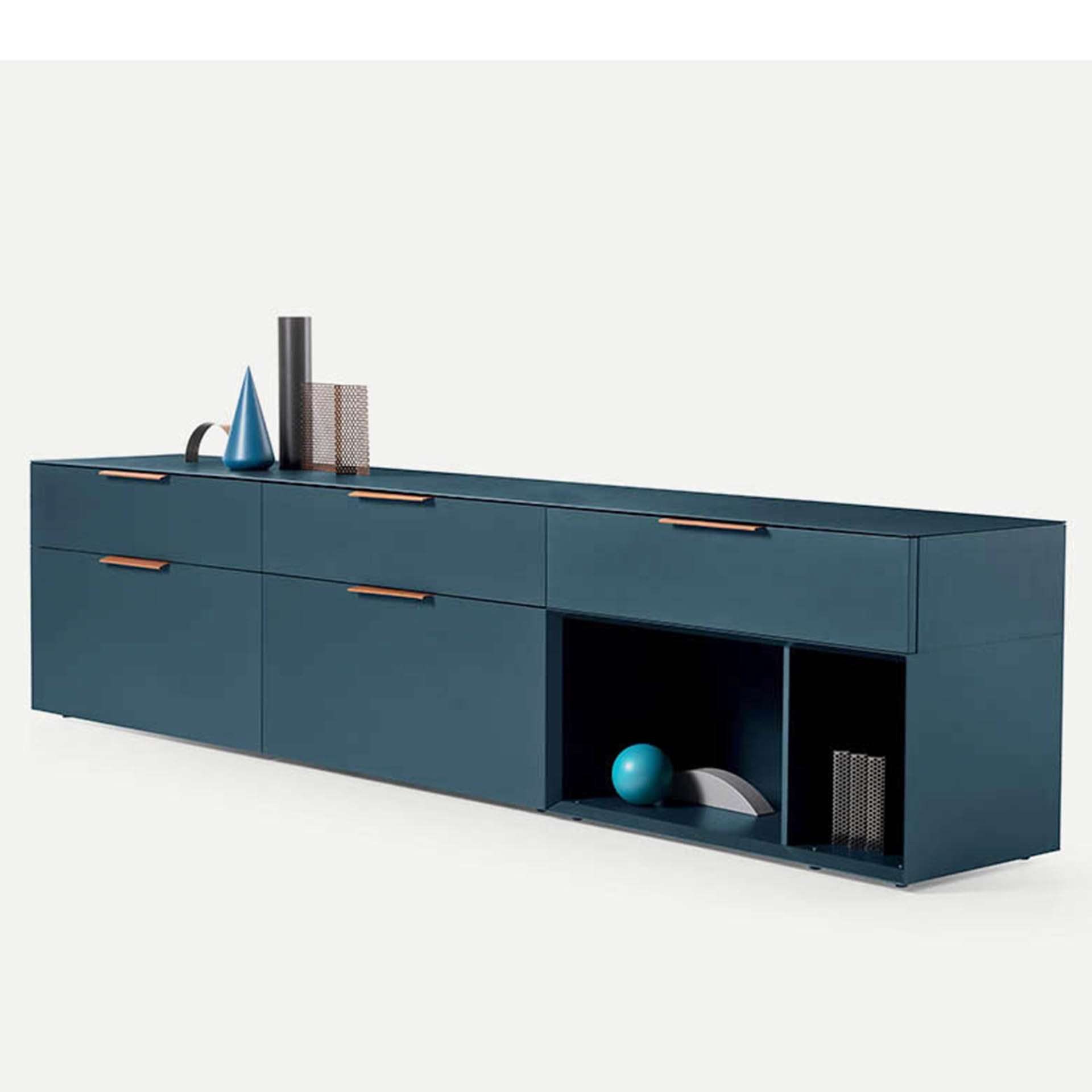 A sideboard of many faces, Brema is all about unfussy lines and formal elegance while giving you the utmost freedom to tailor the look and function of the piece to your individual tastes. An incredible array of material, with a choice of refined belt leather handles or the more minimalist push-to-open door system, open and closed storage units make alternation of solids and spaces possible: Brema is the fantasy of those who want to model their sideboard around their personal use requirements and their individual sense of style.