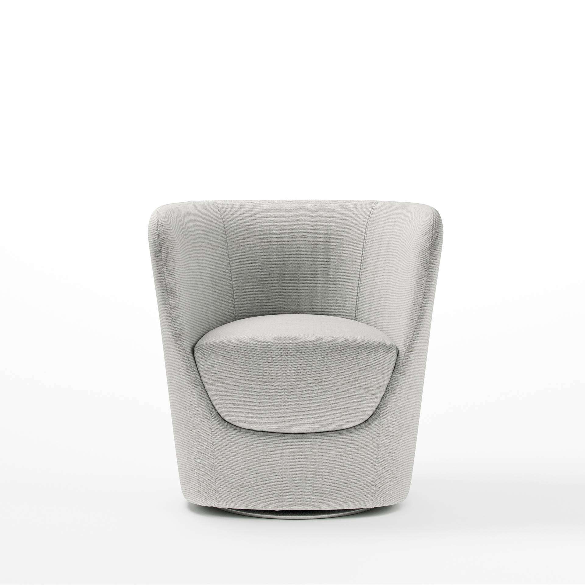 PIANCA Opla Swivel Lounge Chair - Eclectic and elegant, Oplà is the armchair equivalent of a warm, romantic embrace. A modern tub chair designed with rounded lines from head to toe and featuring prominent volumes and proportions offering comfortable, wraparound support. The seat consists in a high, soft cushion designed to slot perfectly into the hollow in the middle of the carcass. Resembling the veins of a flower, the stitching on the inside of the backrest plays up the harmonious geometry. Available the version with removable fabric covers and the nonremovable leather upholstery version. The base can be fixed or comes in a swivel version with auto- return mechanism.