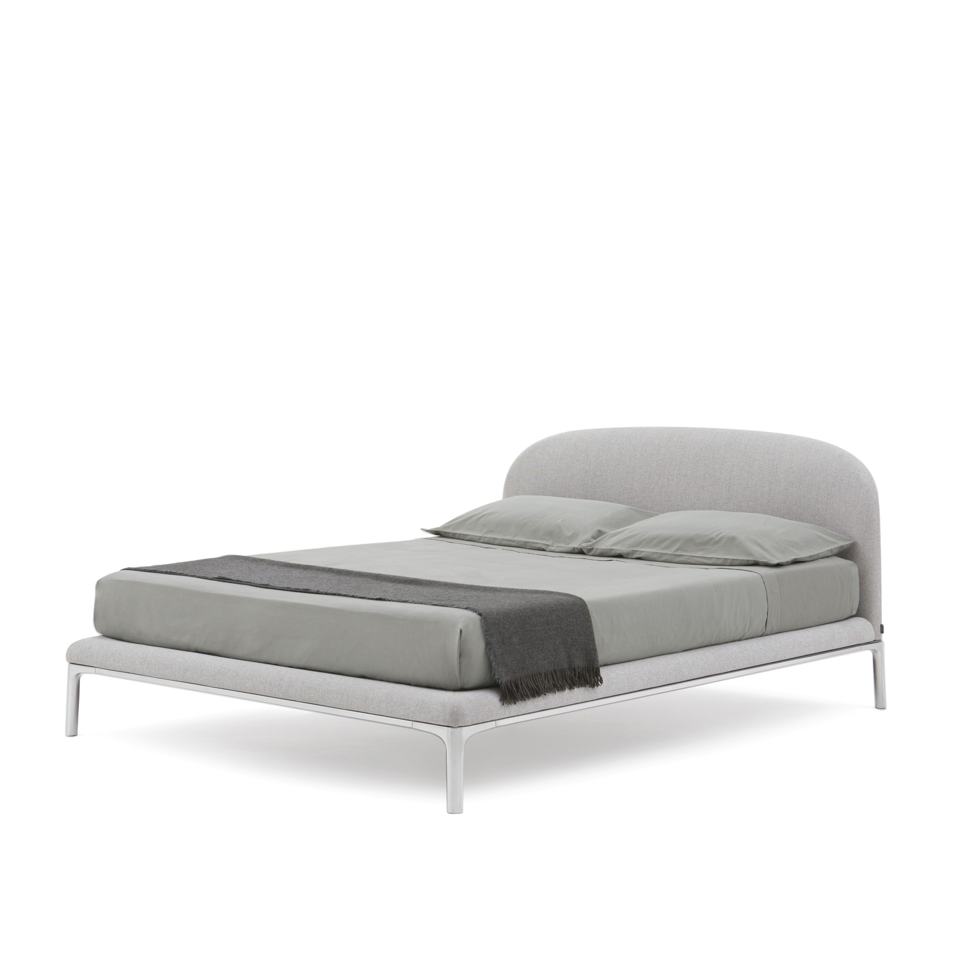 Understated style, inviting contours, softly combined. Rada is a bed with a flowing, intimate and delicate profile. The headboard curves backwards gently, inviting total relaxation, yielding to its form. The bed appears to derive from a single pen-stroke, its curves flowing seamlessly into metal feet, in a supremely delicate yet natural contrast of materials. The upholstery is light and carefully measured, the product of Philippe Tabet’s design style and the skilled hand of the master craftsman who created it.