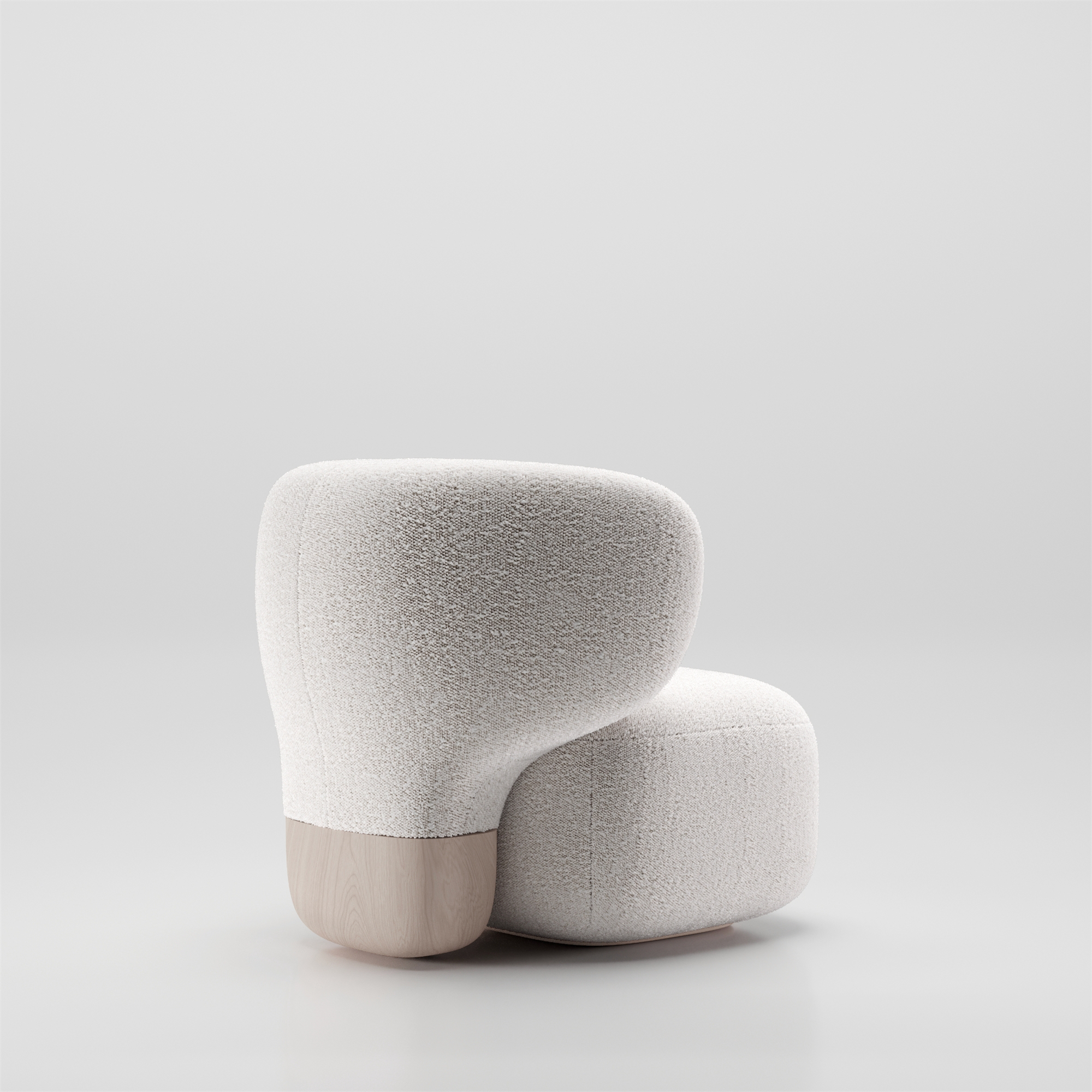 The Yoshida Lounge chair is a minimal piece designed to look great from all angles. From the front, two oversized cushions seem to float, unsupported and balancing in place. From behind you see a large solid wood piece which acts as both the base and the back of the chair, containing within it the large fully upholstered seat and back.