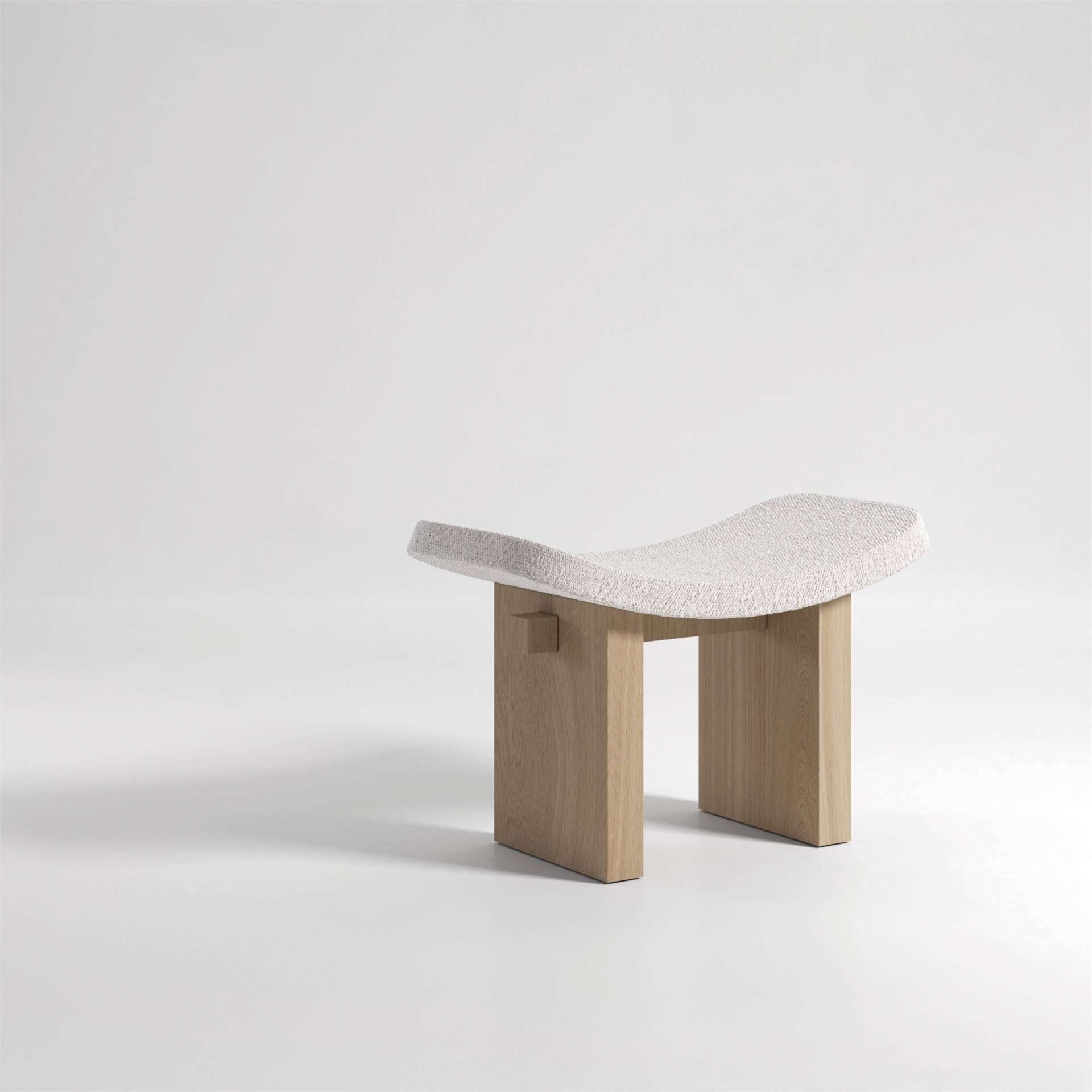 The Nara stool is a minimal one-seater stool with references to ancient Japanese architecture and forms. Nara is the perfect piece to sit in the corner of a room until needed, her combination of strong straight lines and soft, curved upholstery give her a grand presence like an ancient temple.
