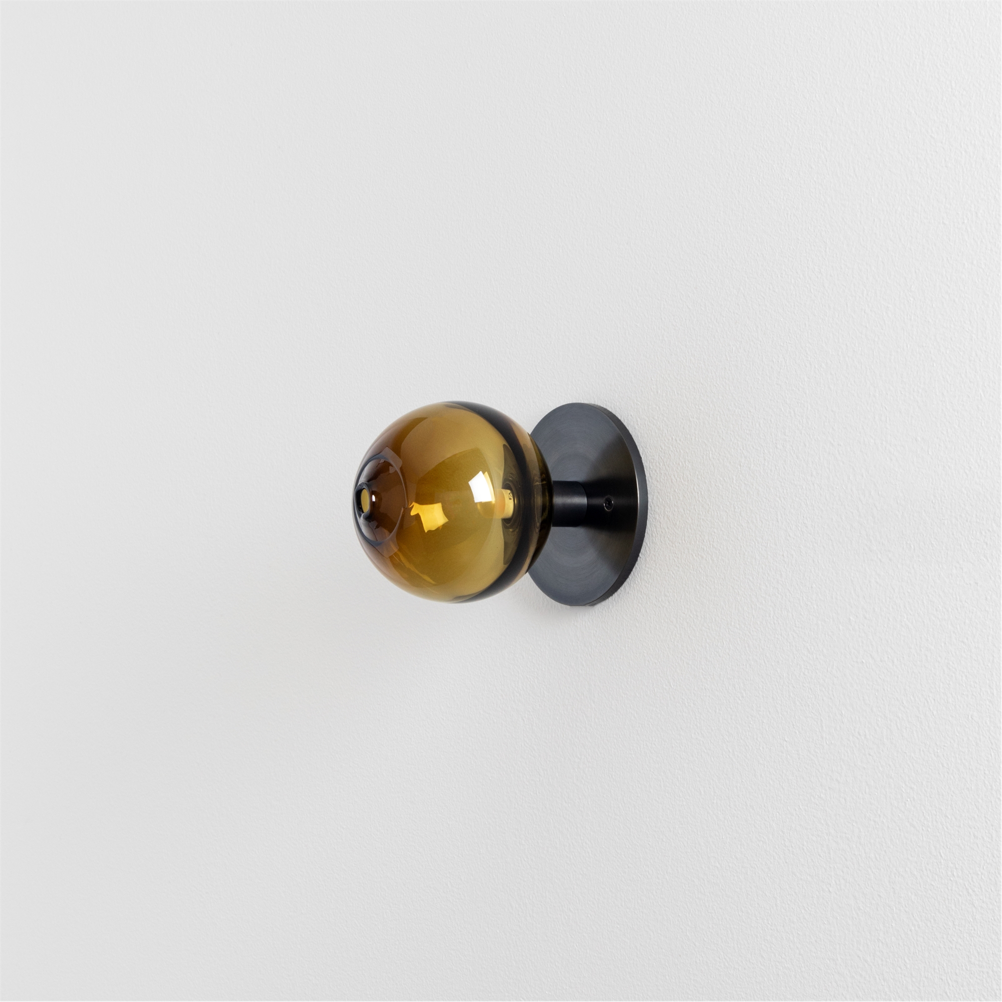 The Peak Sconce/Ceiling light is a small conical form which fits against the wall or ceiling supporting a lit handblown glass diffuser. The glass diffusers are available in two shapes and in both "dipped" glass, featuring the SkLO double-dipped flame-polished mouth and "textured" glass, featuring a soft, frosted finish and subtle sculpted vertical ridges.
