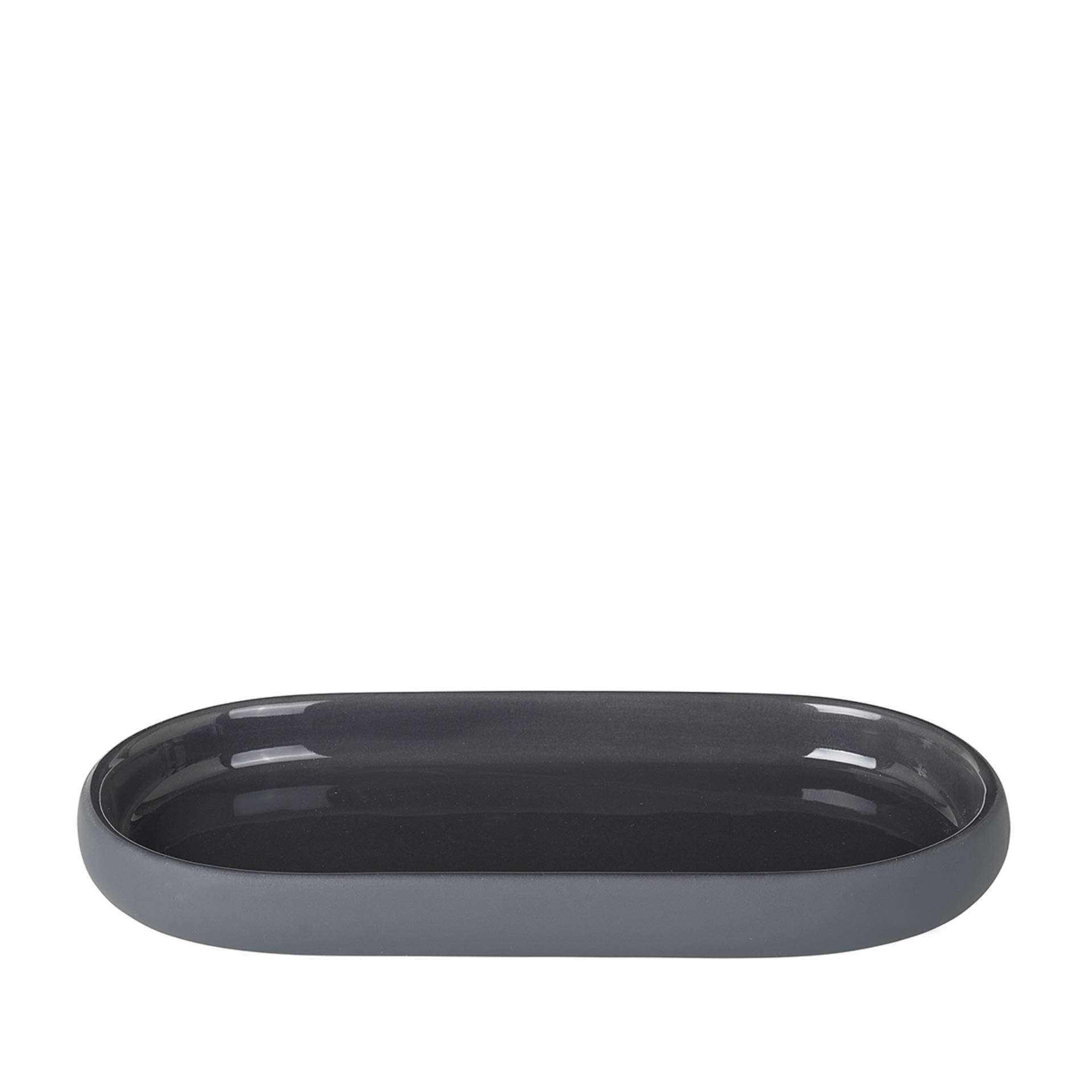 BLOMUS Sono Oval Tray - Oval Tray - SONO is just one available design in the blomus SONO bath line which features gentle shapes and perfectly rounded edges. The new SONO range includes a soap dispenser, soap dish, tumbler, tray, storage box, vanity mirror, pedal bin waste basket, squeegee and toilet brush in a variety of colors including: Magnet (charcoal), Satellite (taupe), Moonbeam (cream), Microchip (light grey), Agave Green, Tarmac (olive), White, Black and Ashley Blue.