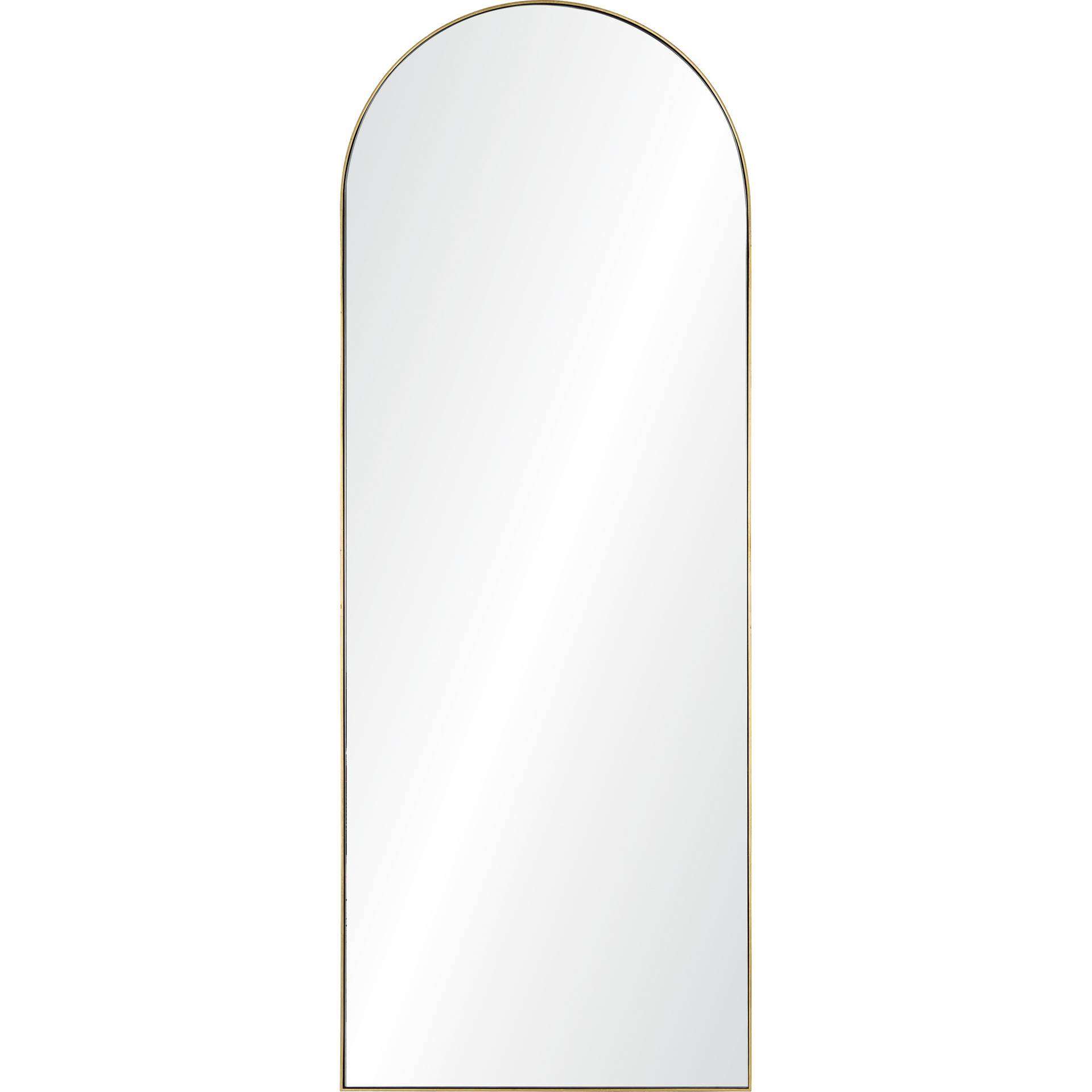 Stand tall in all your glory with this elegant full-length mirror. The arced top is an elegant statement for the bedroom wall. The iron frame has a gold leaf finish for a sophisticated look.