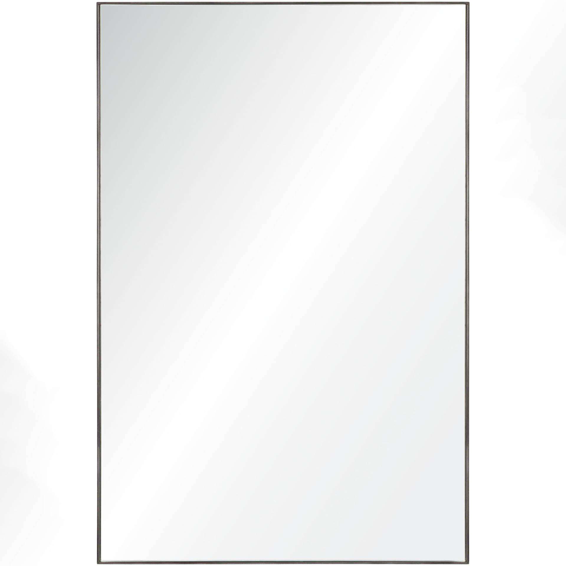 A fine charcoal gray metallic edge frames this rectangular wall mirror.